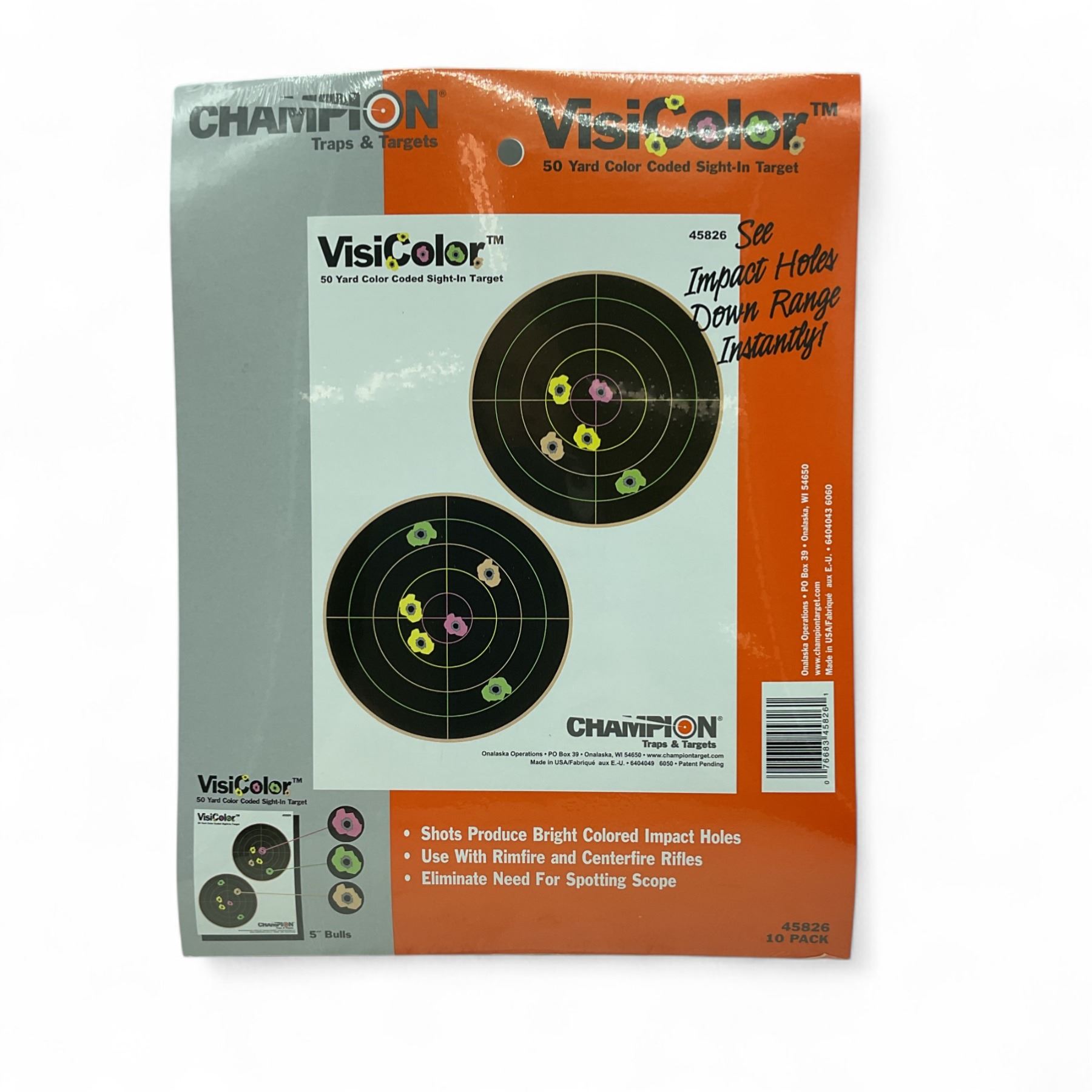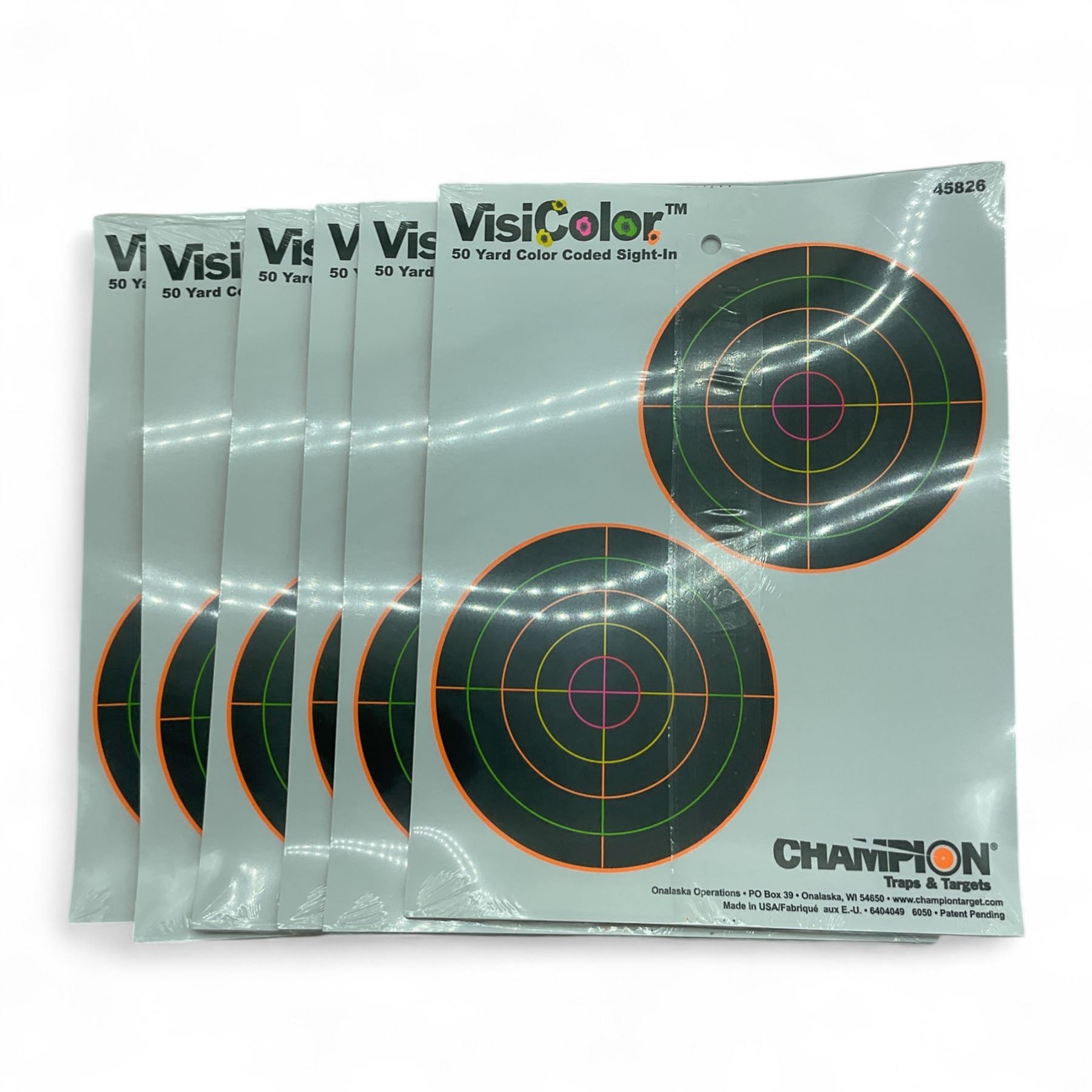 Champion Visicolor 50 Yard Color Coded Sight-In Double Bullseye Target 10 Pack X 6 Qty