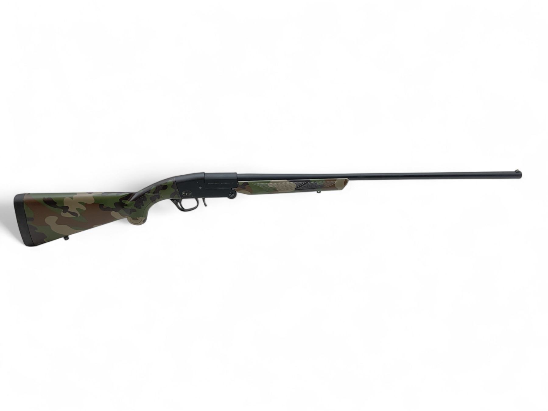Charles Daly 101 Single Shot .410 Shotgun 3" Chamber 26" Barrel Woodlands Camo, New. Bead sight, comes with a removable choke. This is a non-restricted firearm.