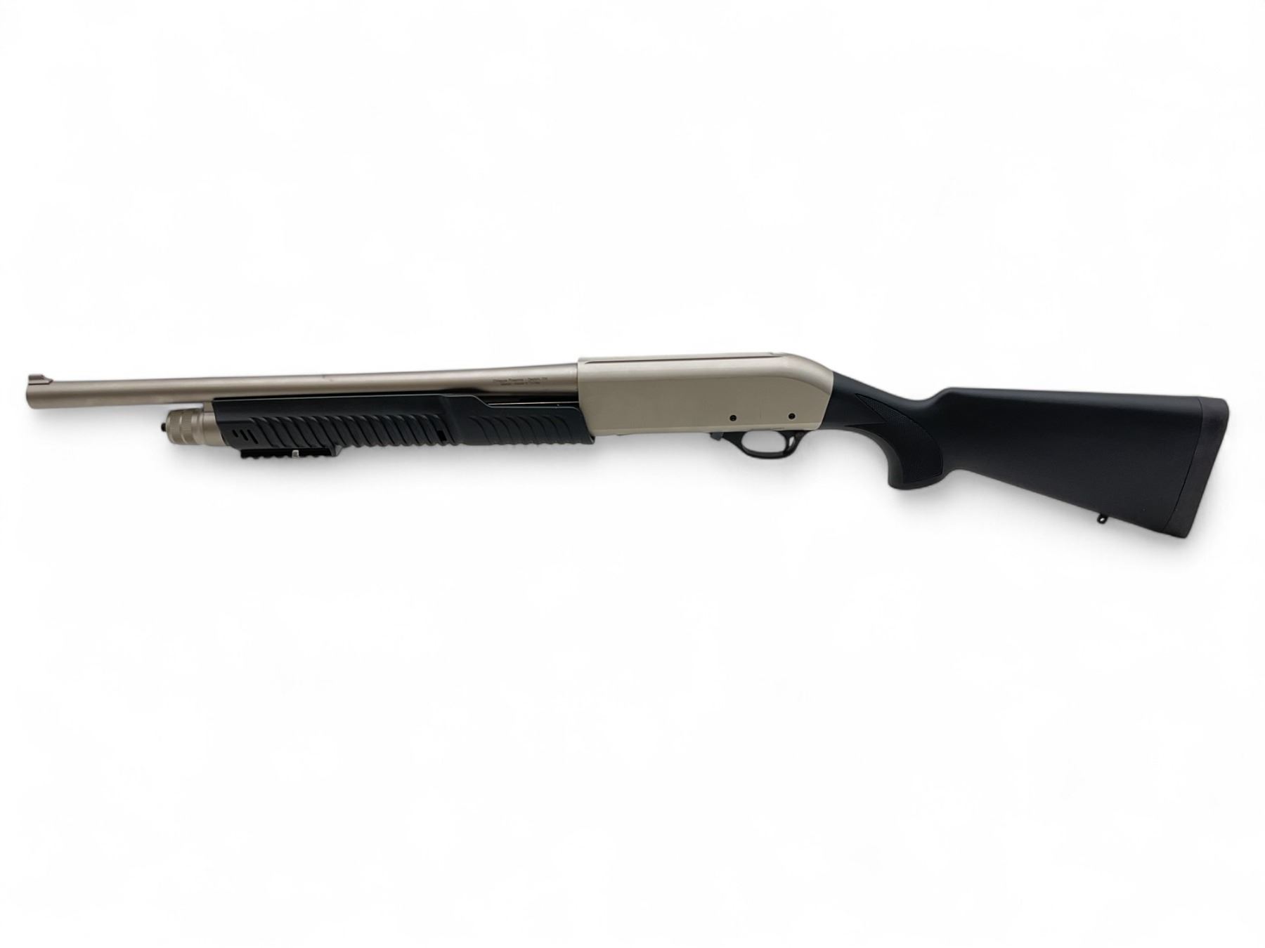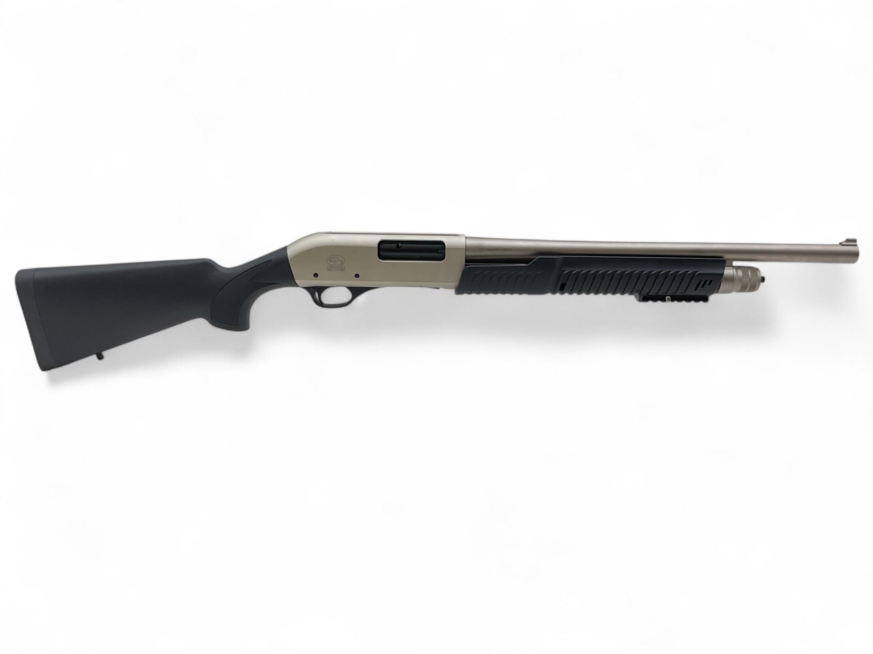 Charles Daly Defense Model 301 Pump Action Shotgun 12Ga 3" Chamber 18.5" Barrel Nickel And Black. Fixed front sight; comes with a removable choke. Also includes a pistol grip. Consignor indicates they have never fired this gun. This is a non-restricted firearm.