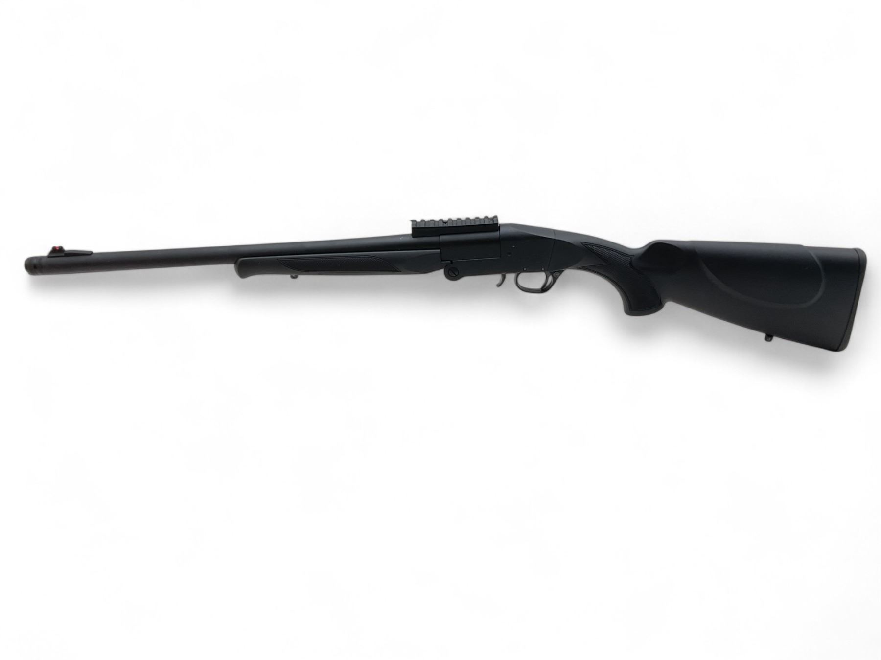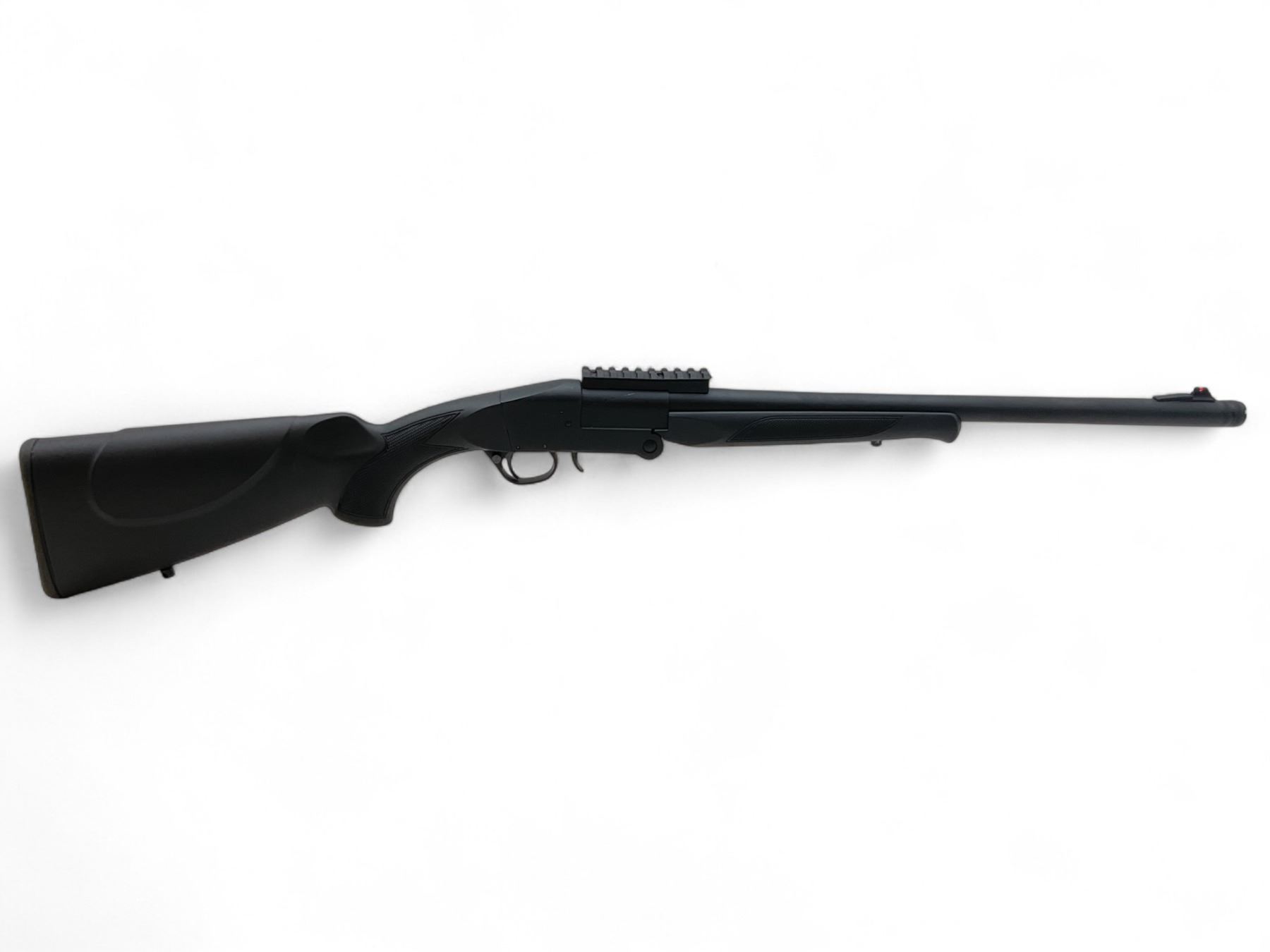 Charles Daly Model 101 Single Shot 12Ga Shotgun 3" Chamber 20" Barrel Synthetic Black Stock. Barrel drilled and tapped with one piece rail installed. Fiber optic sight; comes with an extended removable choke. This is a non-restricted firearm.
