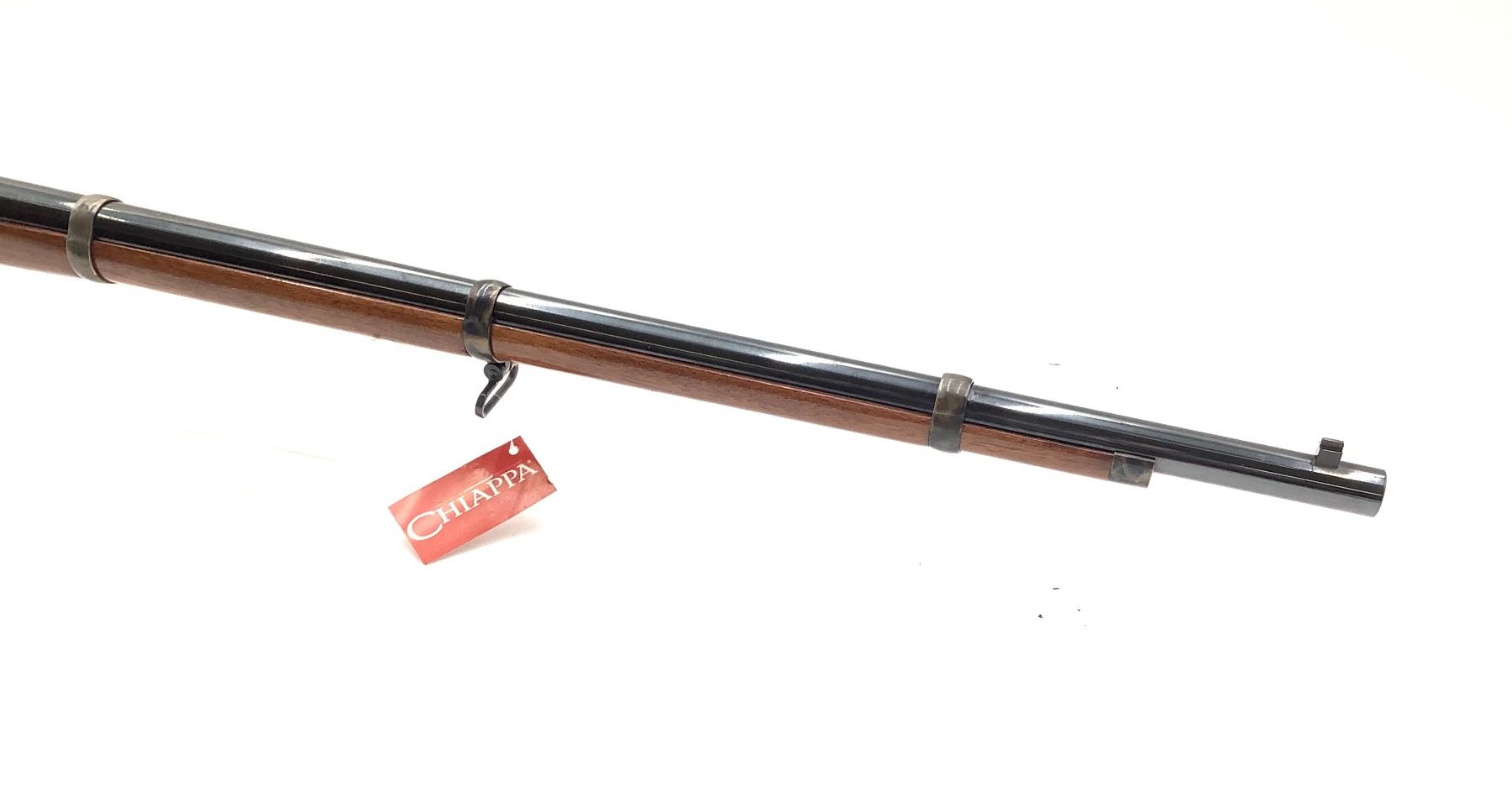 Chiappa 1860 Spencer Lever Action Rifle 45 LC 30" Barrel 3 Band Wood Stock Case Hardened Receiver. Fixed front sight, adjustable rear. Tube fed magazine. This is a non-restricted firearm.