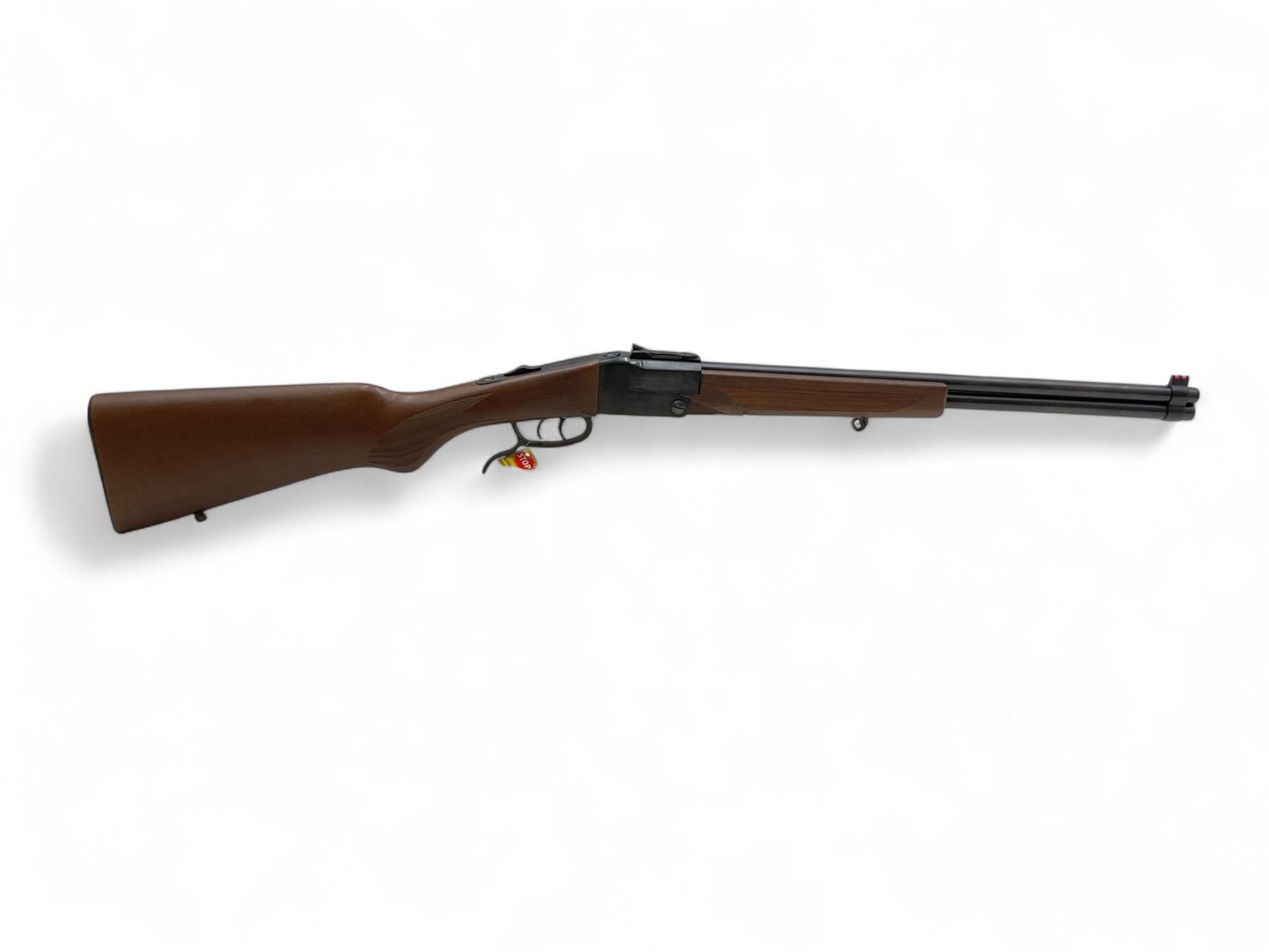 Chiappa Double Badger 410 /.22 WMR Over Under 19" Barrels Wood Stock. 410 barrel has 3" chamber, fixed choke. Fiber optic front and rear sight. This is a non-restricted firearm.