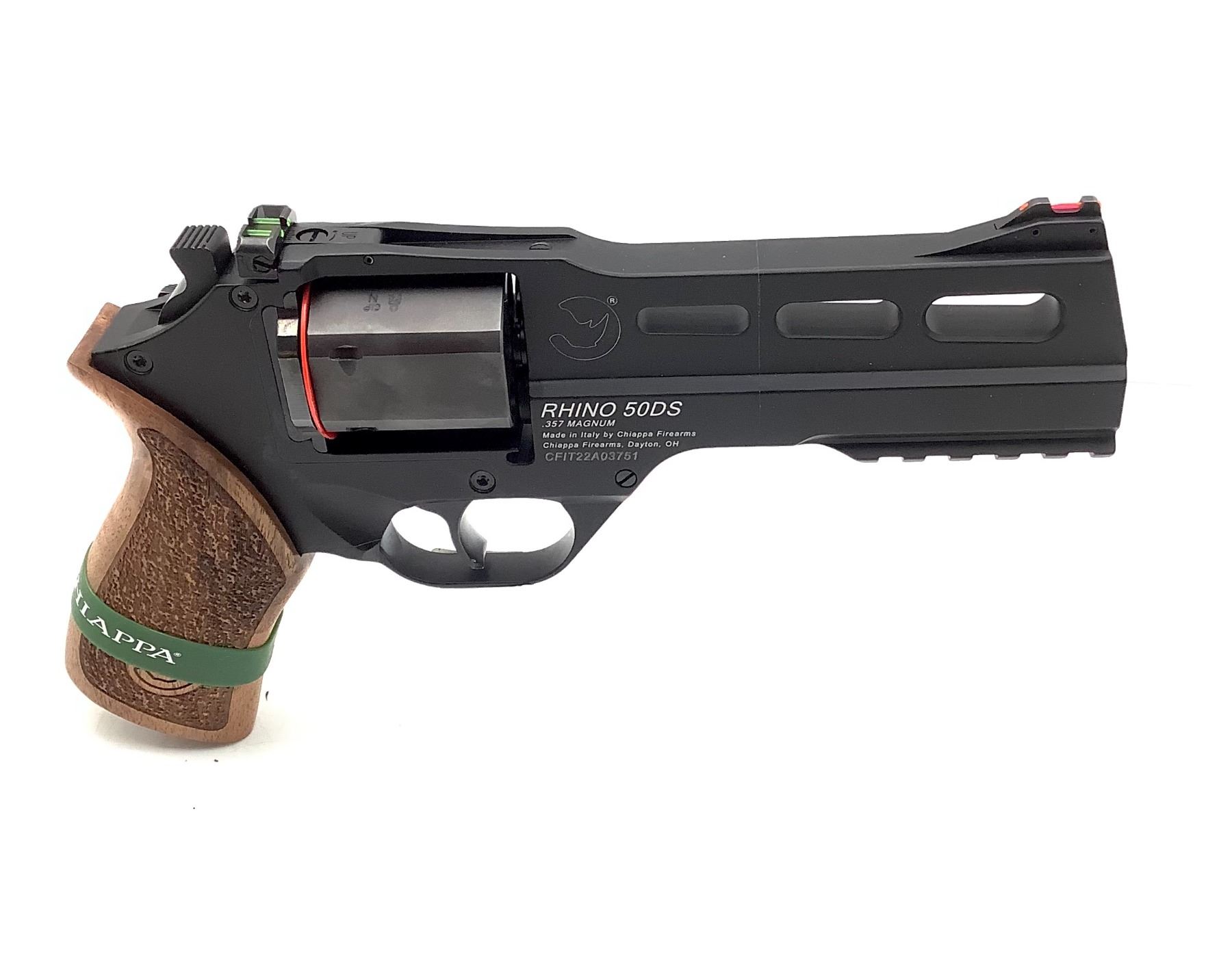 Chiappa Rhino 50DS Revolver 357 Magnum 5" Barrel Black With Wood Grips, New, Restricted. Includes three moon clips, adjustable rear sight. This is a restricted firearm.