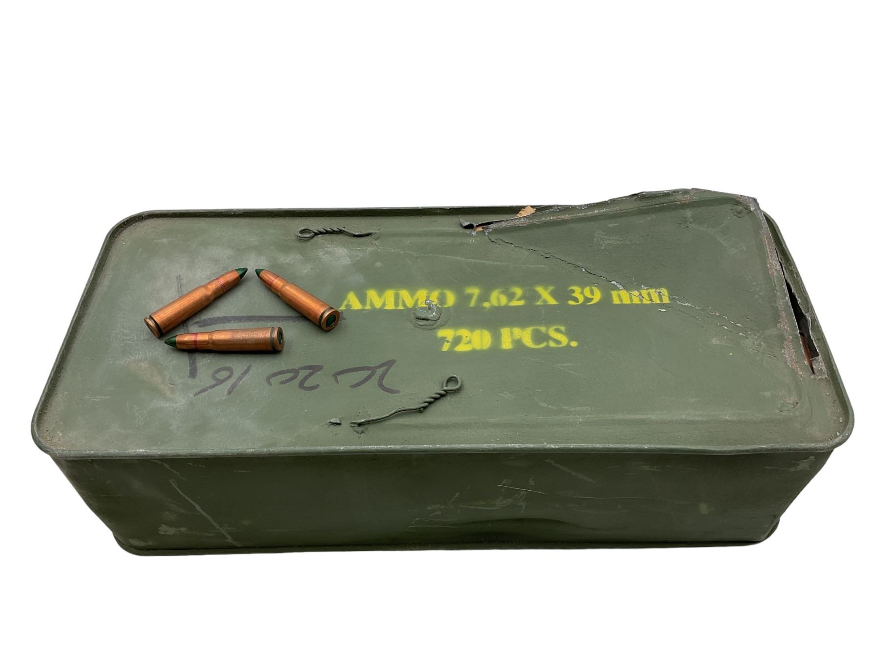 One spam can of 7.62x39 tracer ammunition. There are 720 rounds in the can.