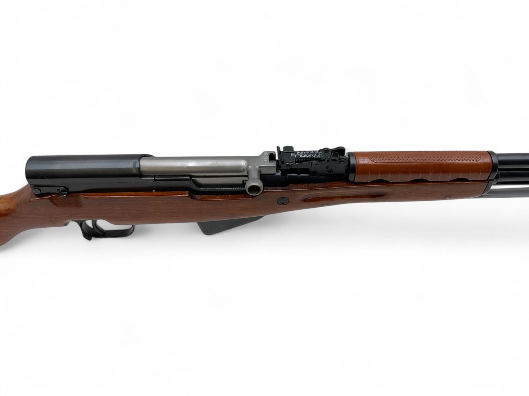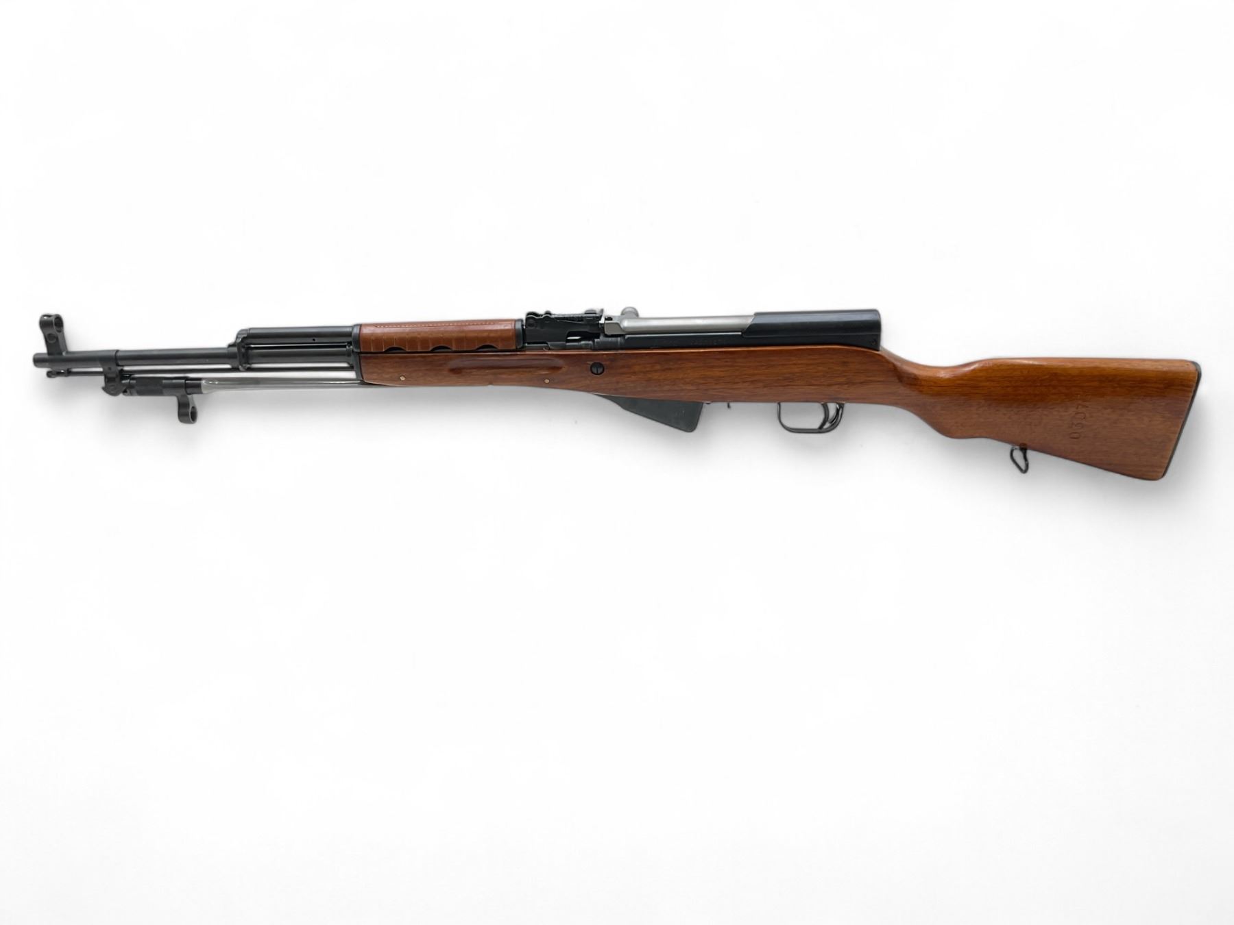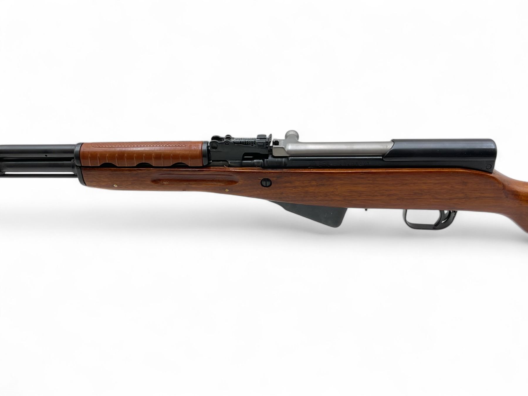 Chinese French Tickler SKS 7.62x39 Semi Auto Rifle 20" Barrel Wood Stock. Ribbed upper handguard. Internal magazine, factory open sights. This is a non-restricted firearm.