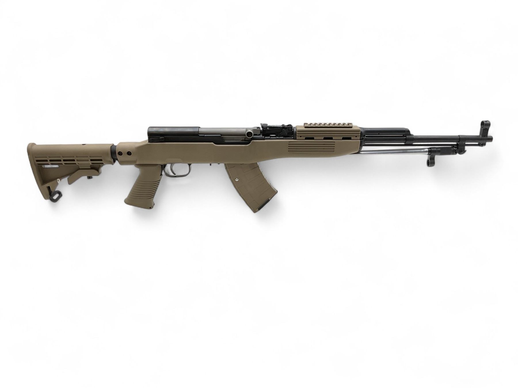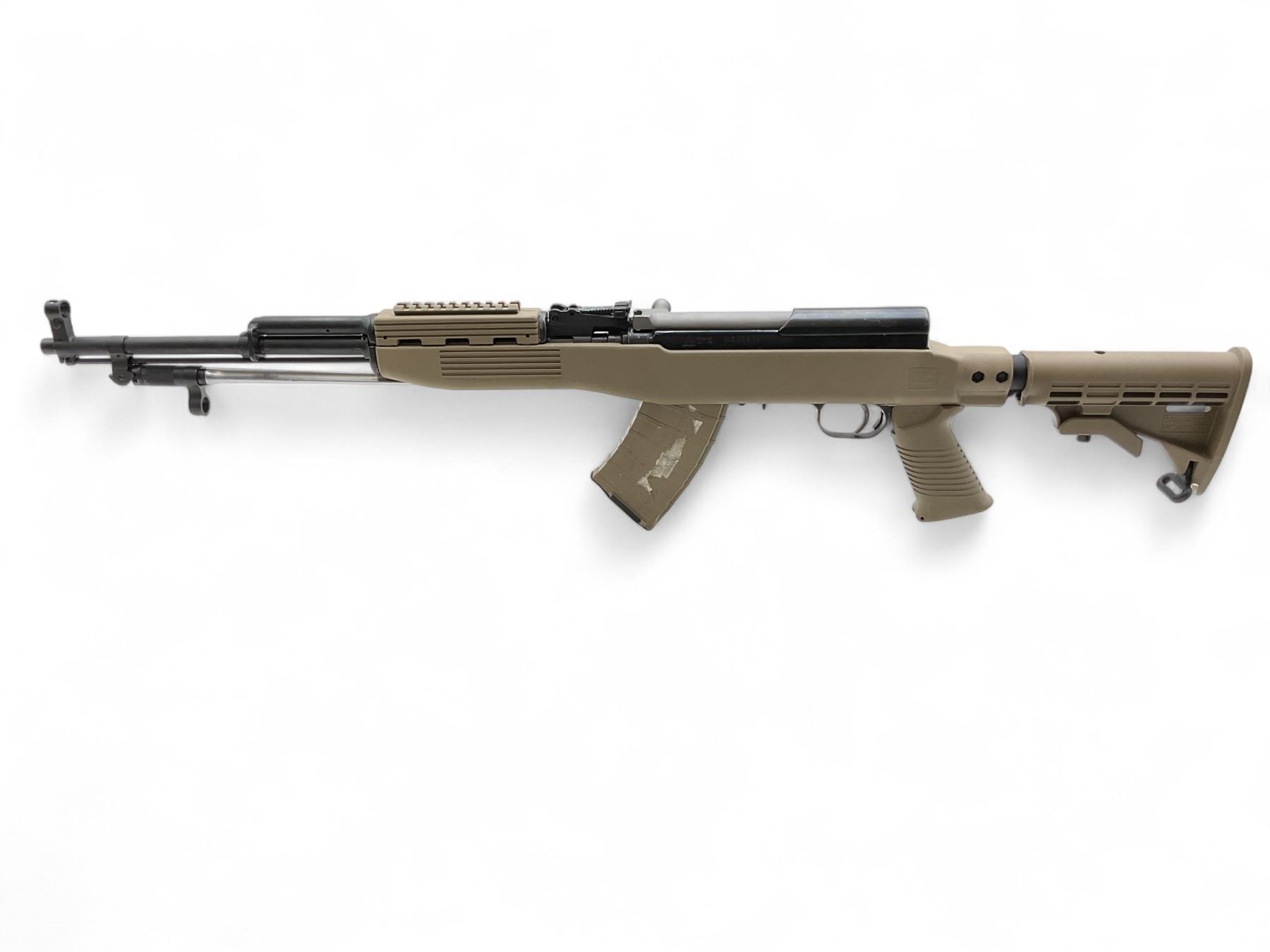 Chinese SKS 7.62x39 Semi Auto Rifle 20" Barrel Tapco Tan Stock. Folding bayonet; factory open sights. Adjustable stock; comes with one removable Tapco magazine. This is a non-restricted firearm.