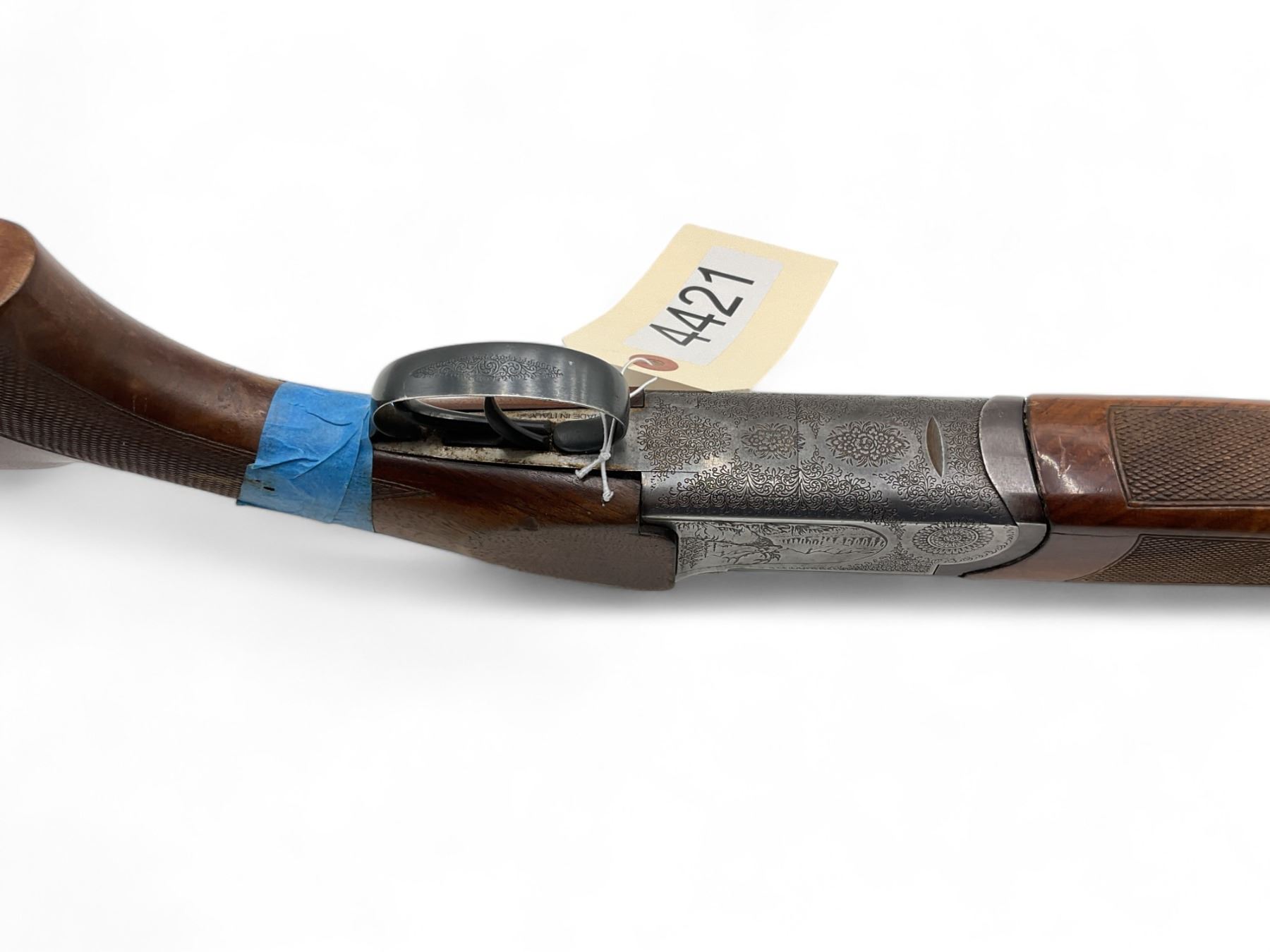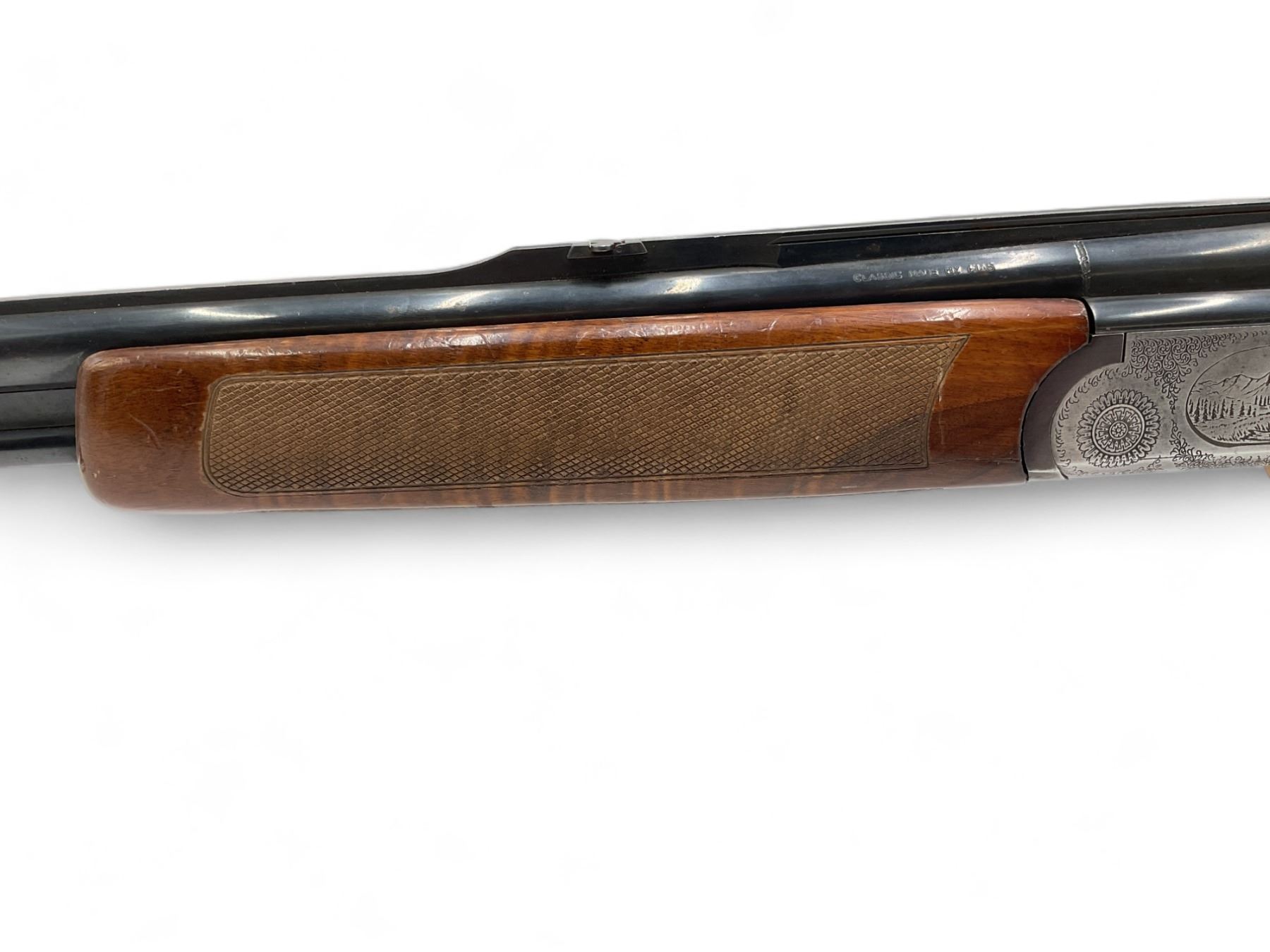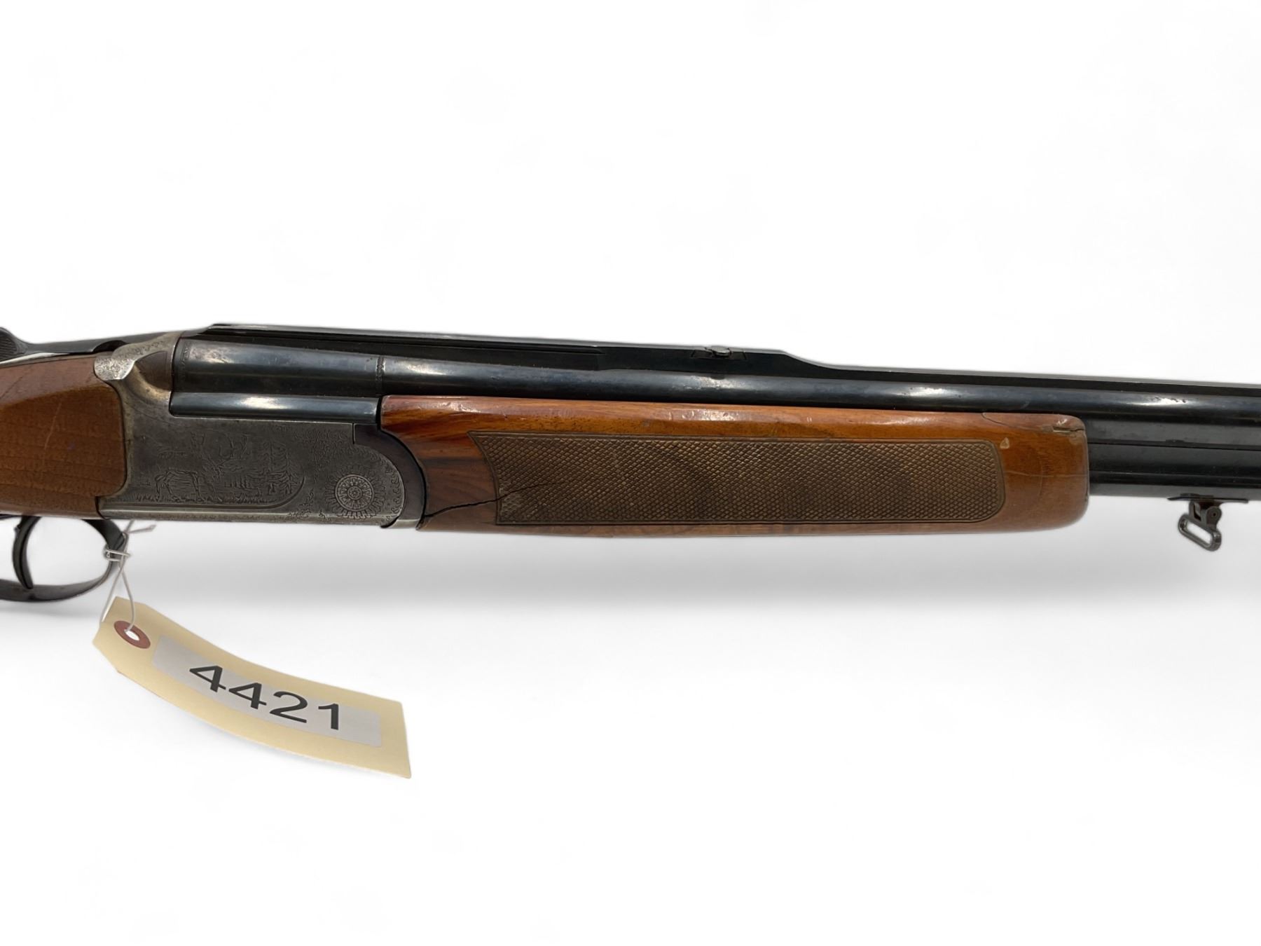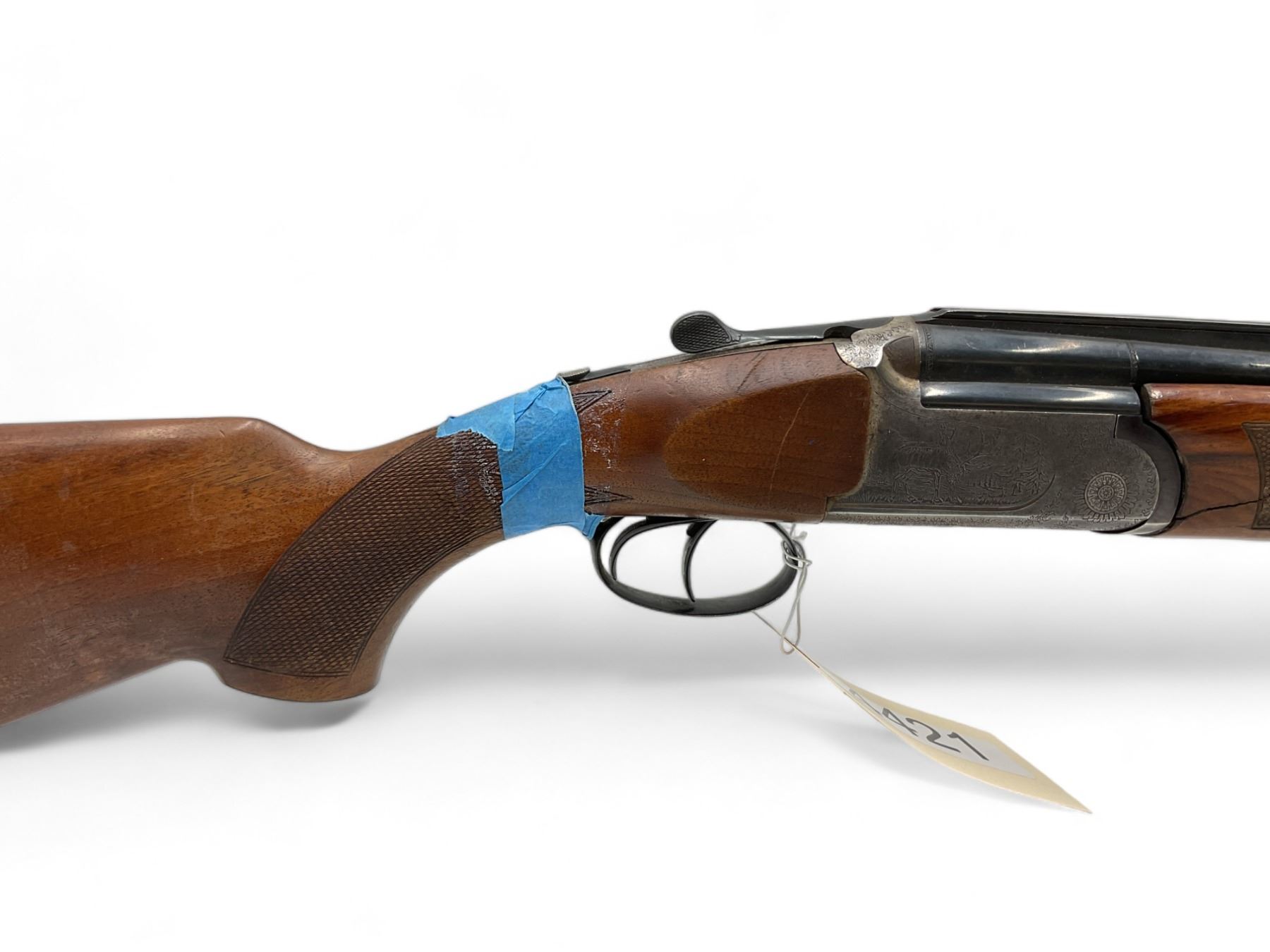 Classic Made By Fias Combination Gun 12Ga And 7X57R 24" Barrels Wood Stock. 12Ga barrel has 2.75" chamber. Fixed front sight, flip up rear sight. Wood forend is cracked and broken. Plastic butt plate is cracked and missing a section; rear stock is broken and cracked. Double triggers do not release when pulled, appears to be binding internally. This is a non-restricted firearm.