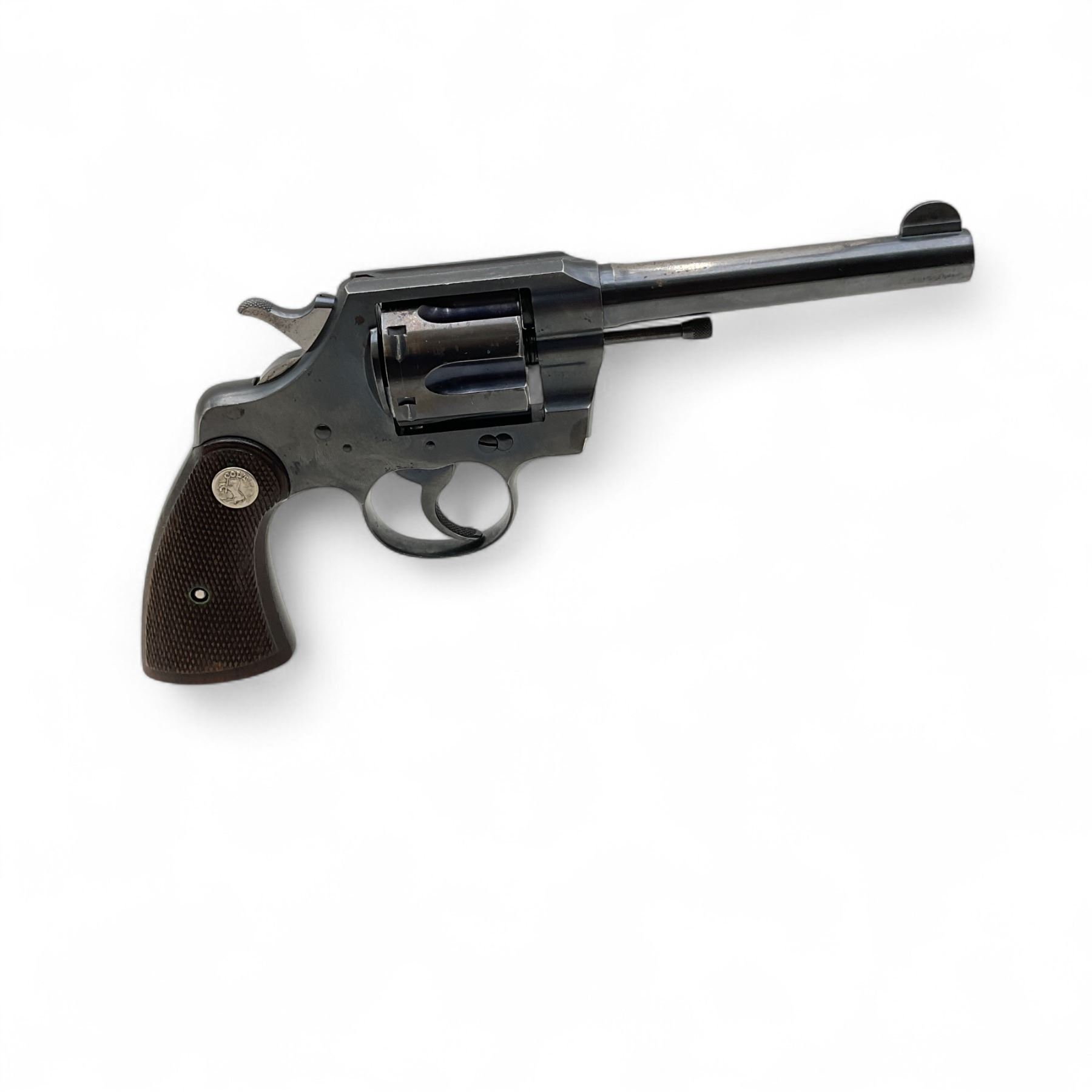 Colt New Service Revolver .38 Long Colt 5" Barrel, Restricted. 6 round capacity, fixed sights.