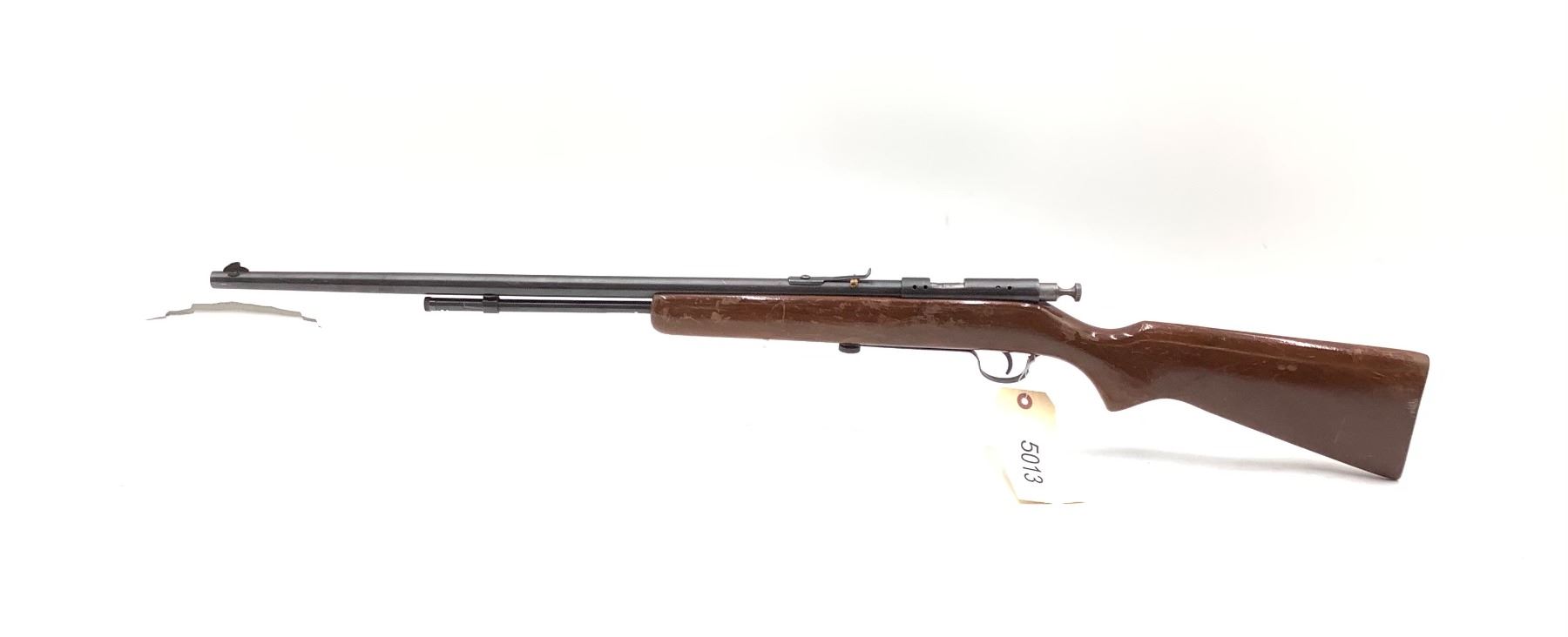 Cooey Model 60 Bolt Action Rifle 22S/L/LR 24" Barrel Wood Stock. Tubular magazine, receiver has been drilled and tapped. Factory open sights; rear sight missing elevator. This is a non-restricted firearm.