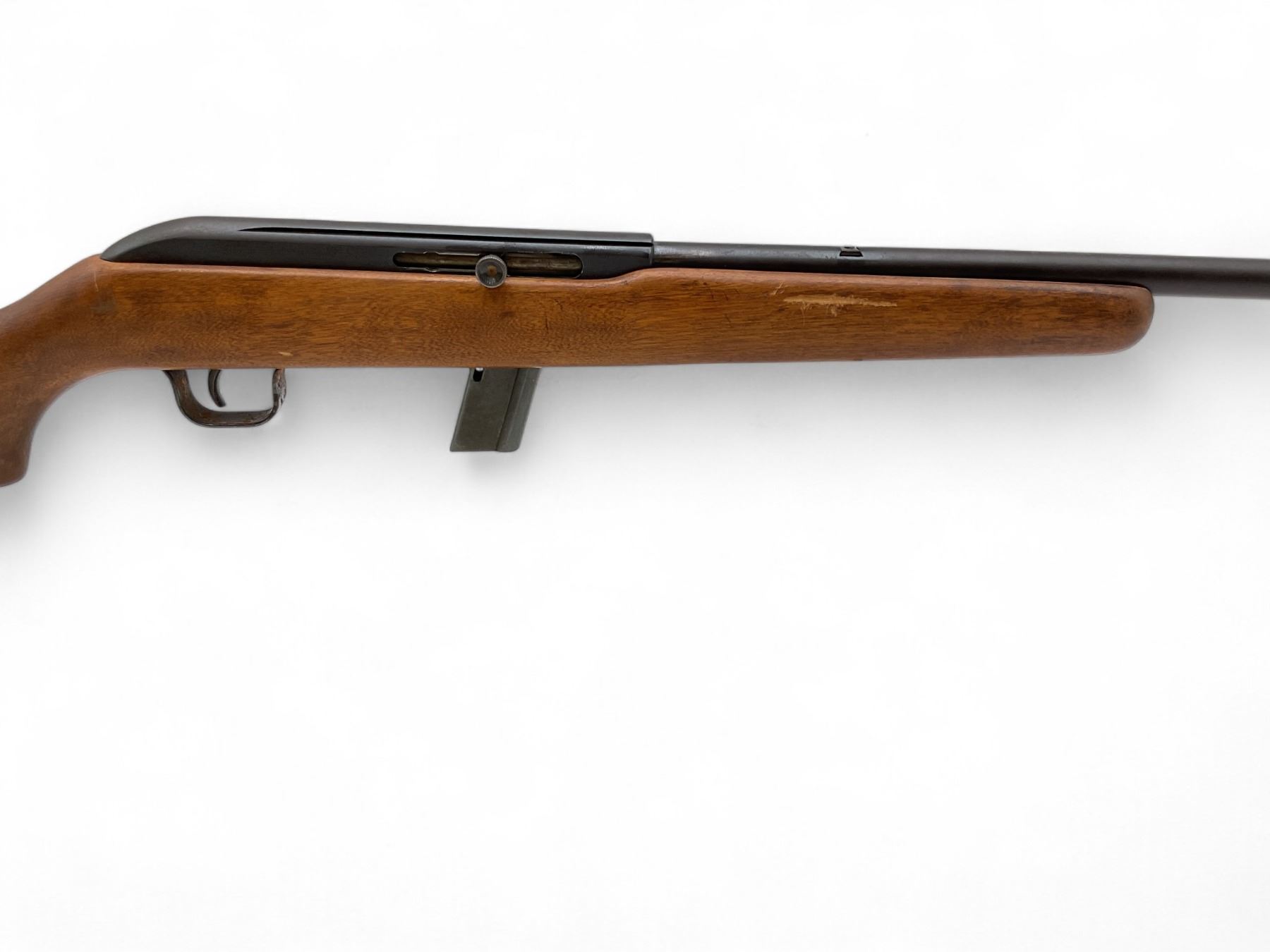 Cooey Model 64 Semi Auto Rifle .22LR 20" Barrel Wood Stock. Comes with one detachable magazine. Consignor indicates gun has issues extracting and failure to feed. This is a non-restricted firearm.