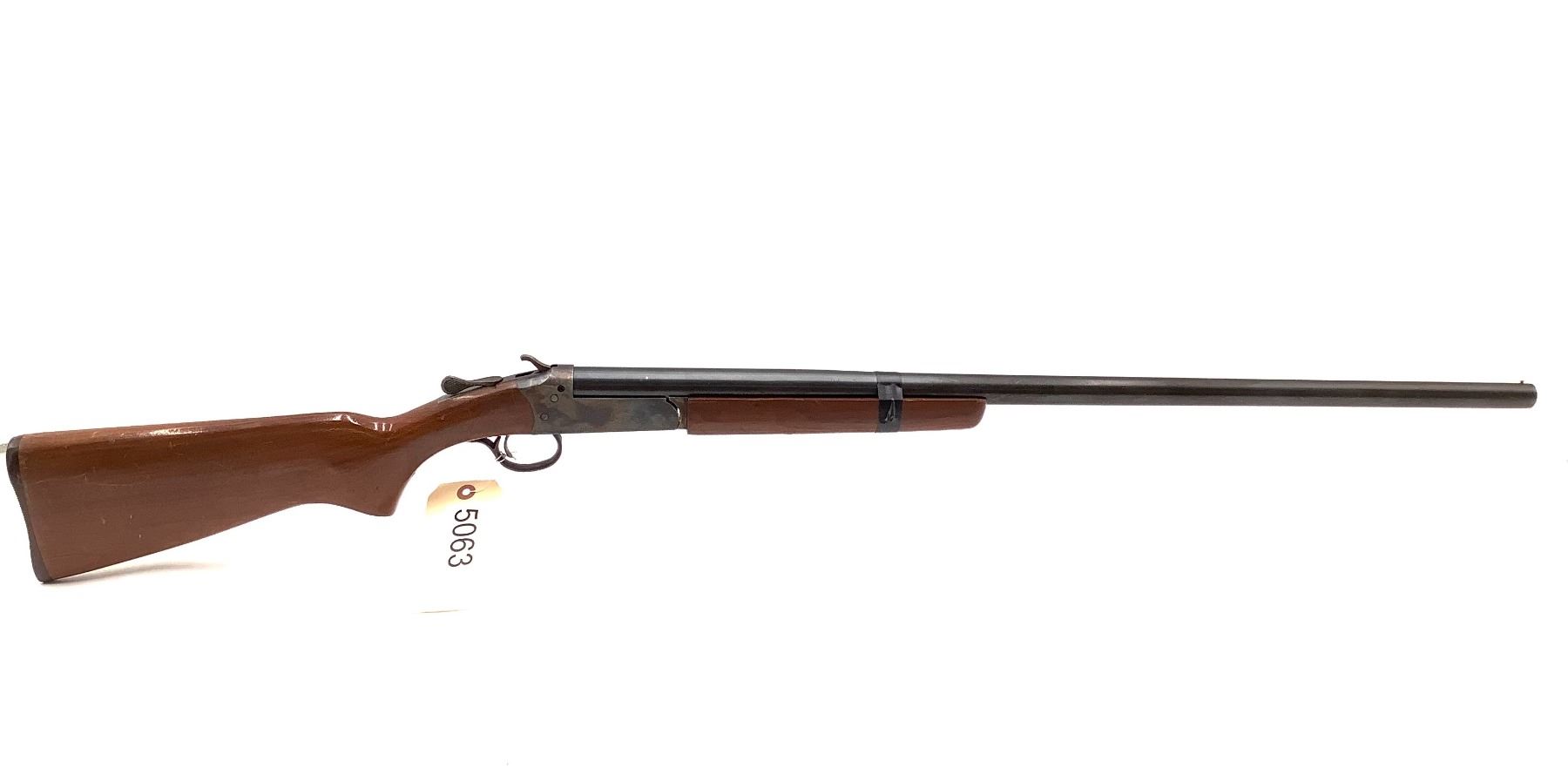 Cooey Model 84 Single Shot 12Ga Shotgun 30" Barrel Wood Stock. Handguard spring is broken; handguard taped to barrel. Bead sight, plastic butt plate. This is a non-restricted firearm.