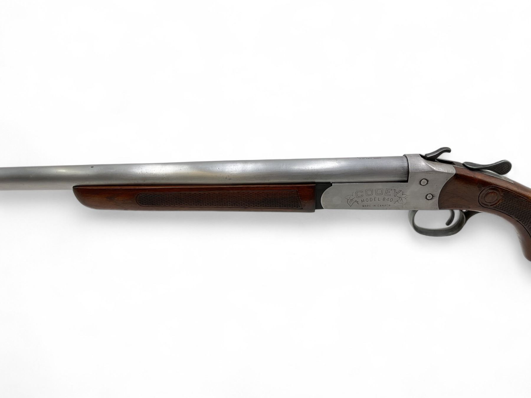 Cooey Model 840 Single Shot 16Ga Shotgun 3" Chamber 30" Barrel Wood Stock. Bead sight; fixed choke. Finish appears to have been buffed off. This is a non-restricted firearm.