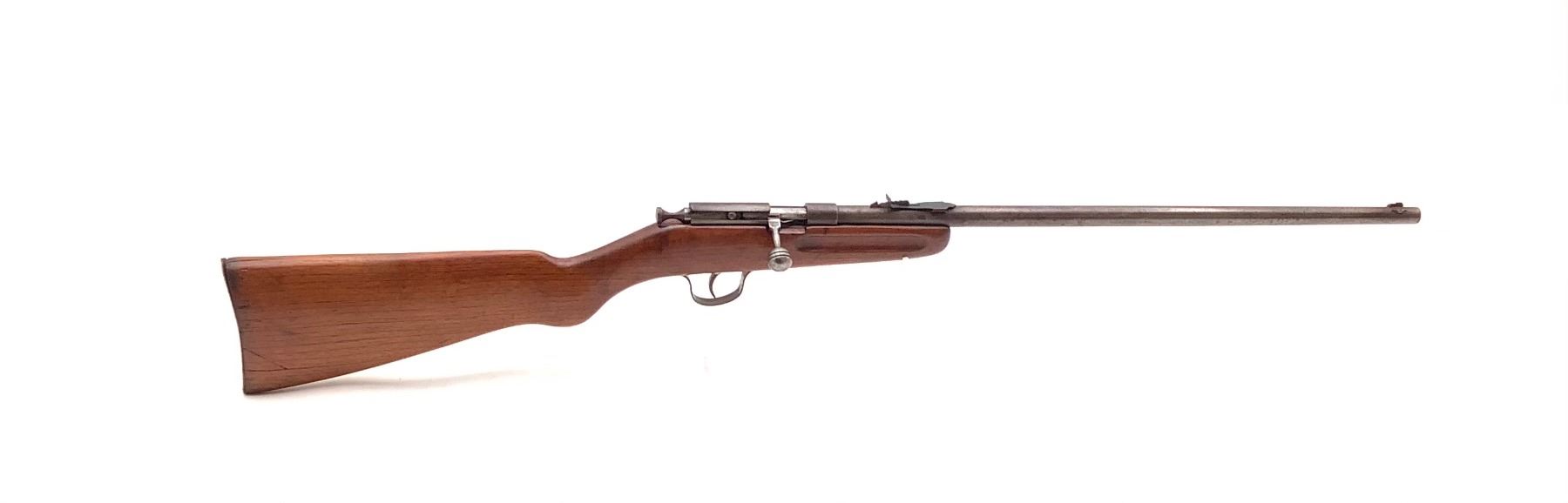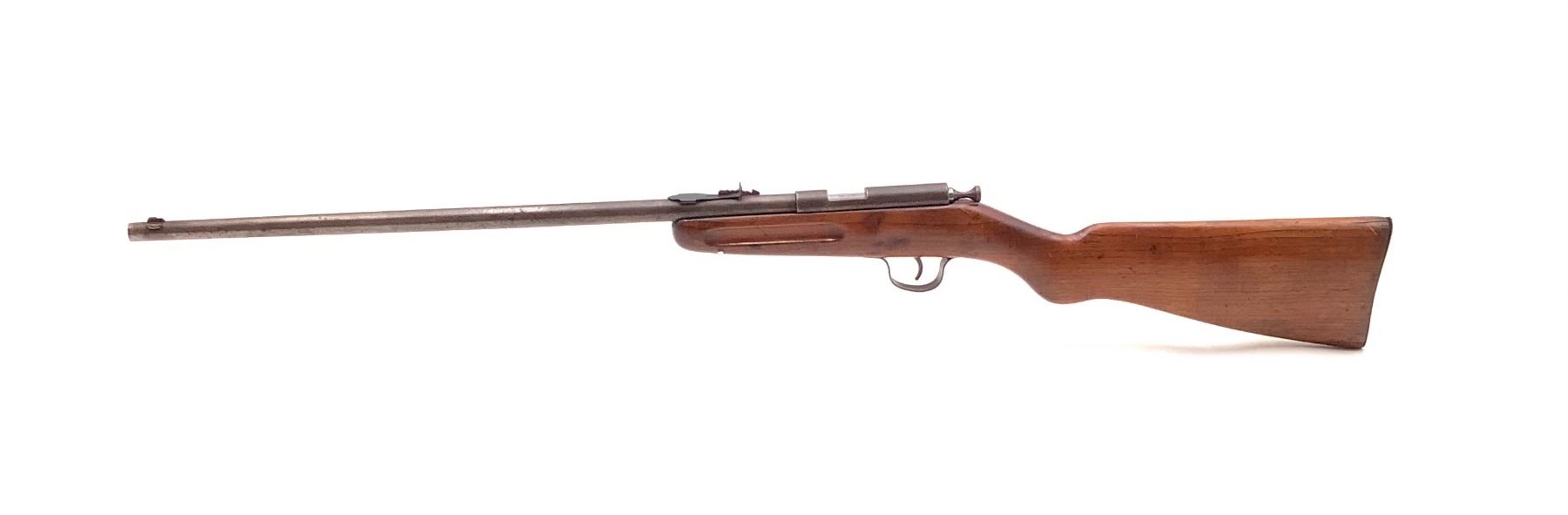 Cooey Ranger Single Shot Rifle Parts Gun 22 Caliber 20" Barrel Open Sights. Receiver is cracked and not safe to fire. Wood stock has cracks, scratches and nicks. Metal finish worn and has marks. This is a non-restricted firearm.
