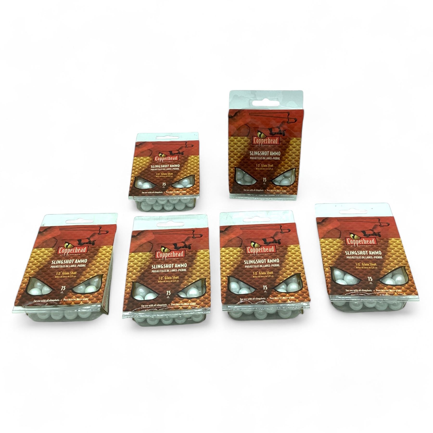 Copperhead Slingshot Ammo, 1/2  Glass Shot, 75 Pack X 6 Qty