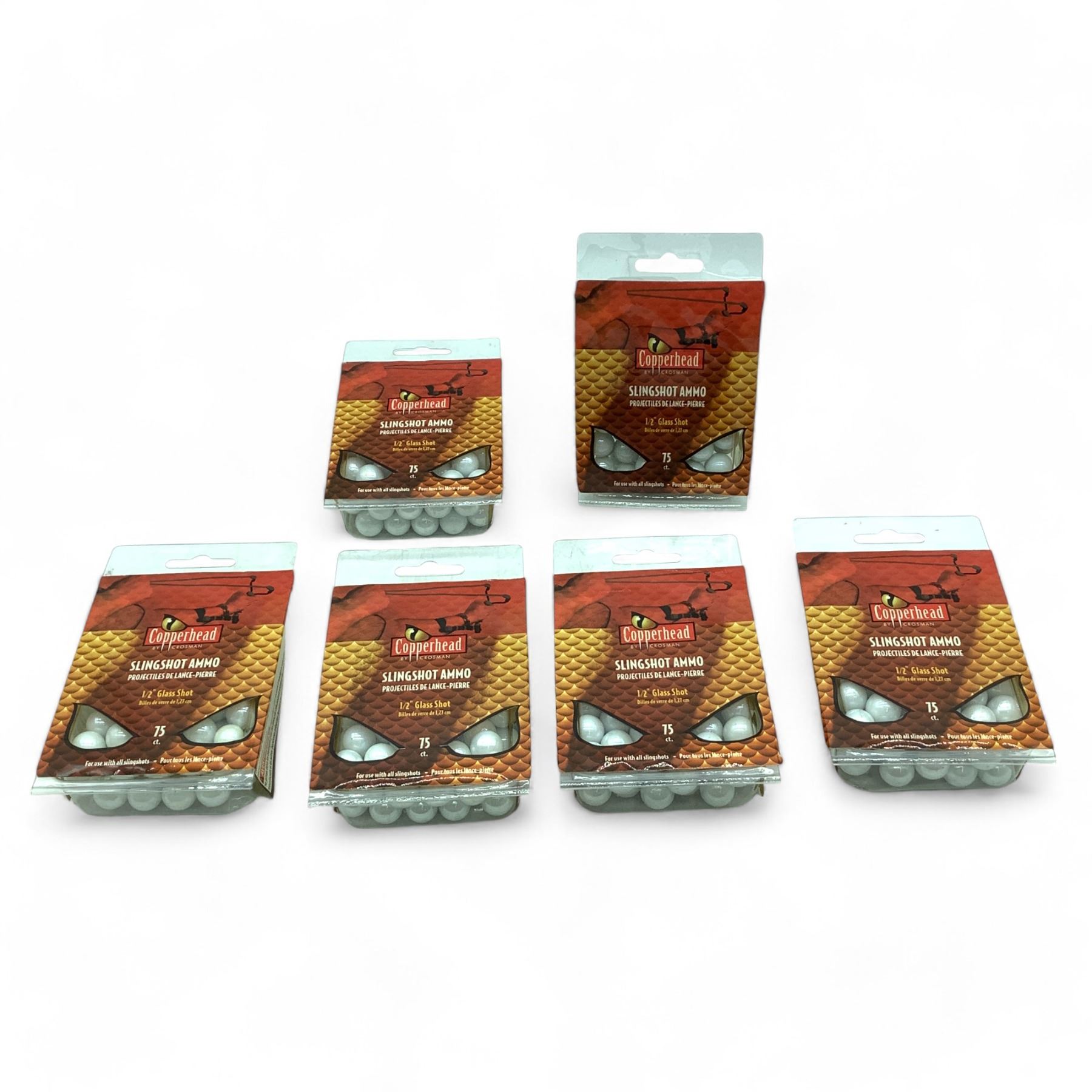 Copperhead Slingshot Ammo, 1/2" Glass Shot, 75 Pack X 6 Qty