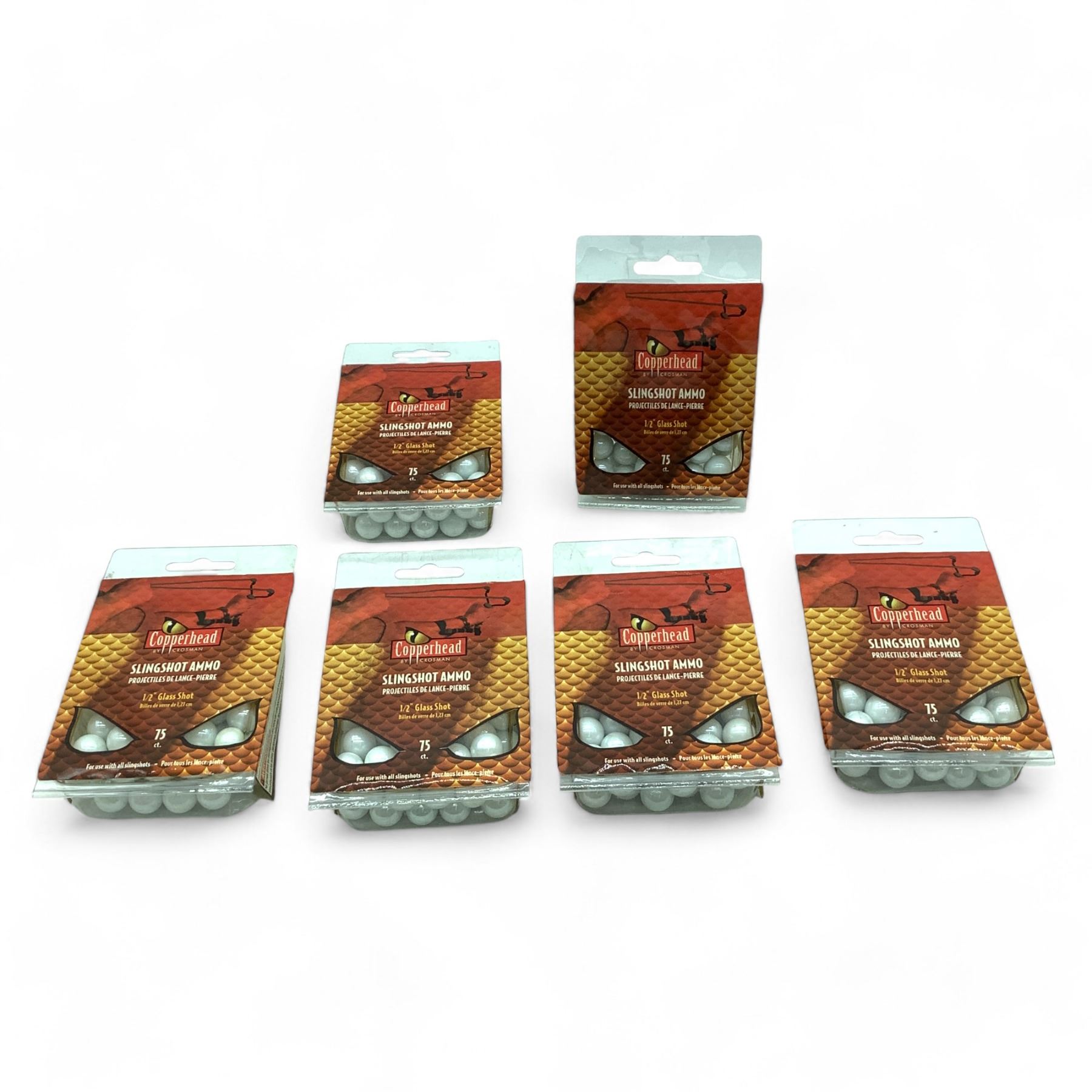 Copperhead Slingshot Ammo, 1/2" Glass Shot, 75 Pack X 6 Qty