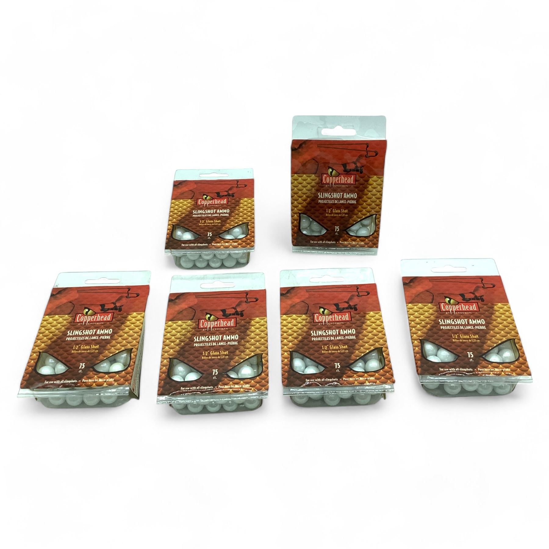 Copperhead Slingshot Ammo, 1/2  Glass Shot, 75 Pack X 6 Qty