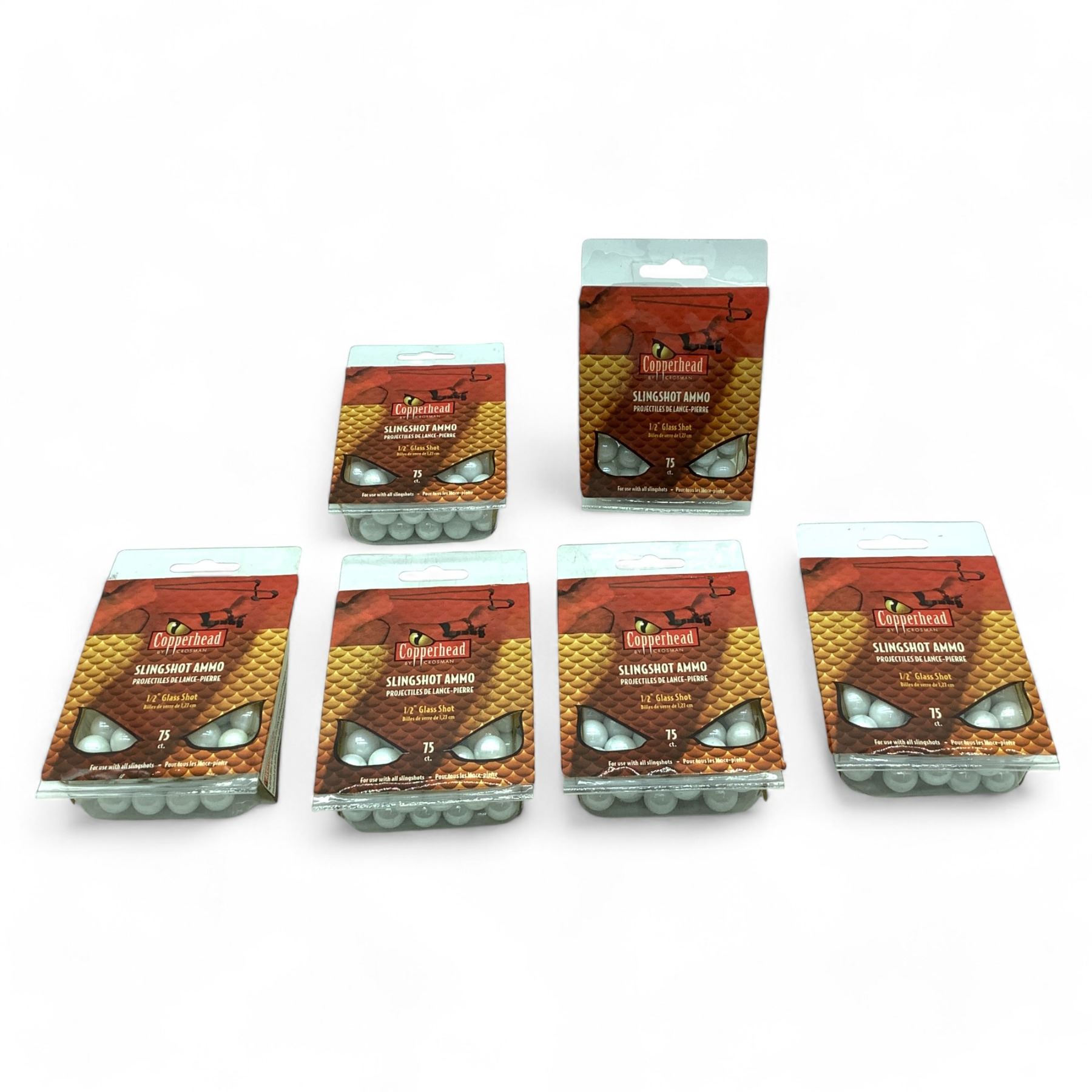 Copperhead Slingshot Ammo, 1/2" Glass Shot, 75 Pack X 6 Qty