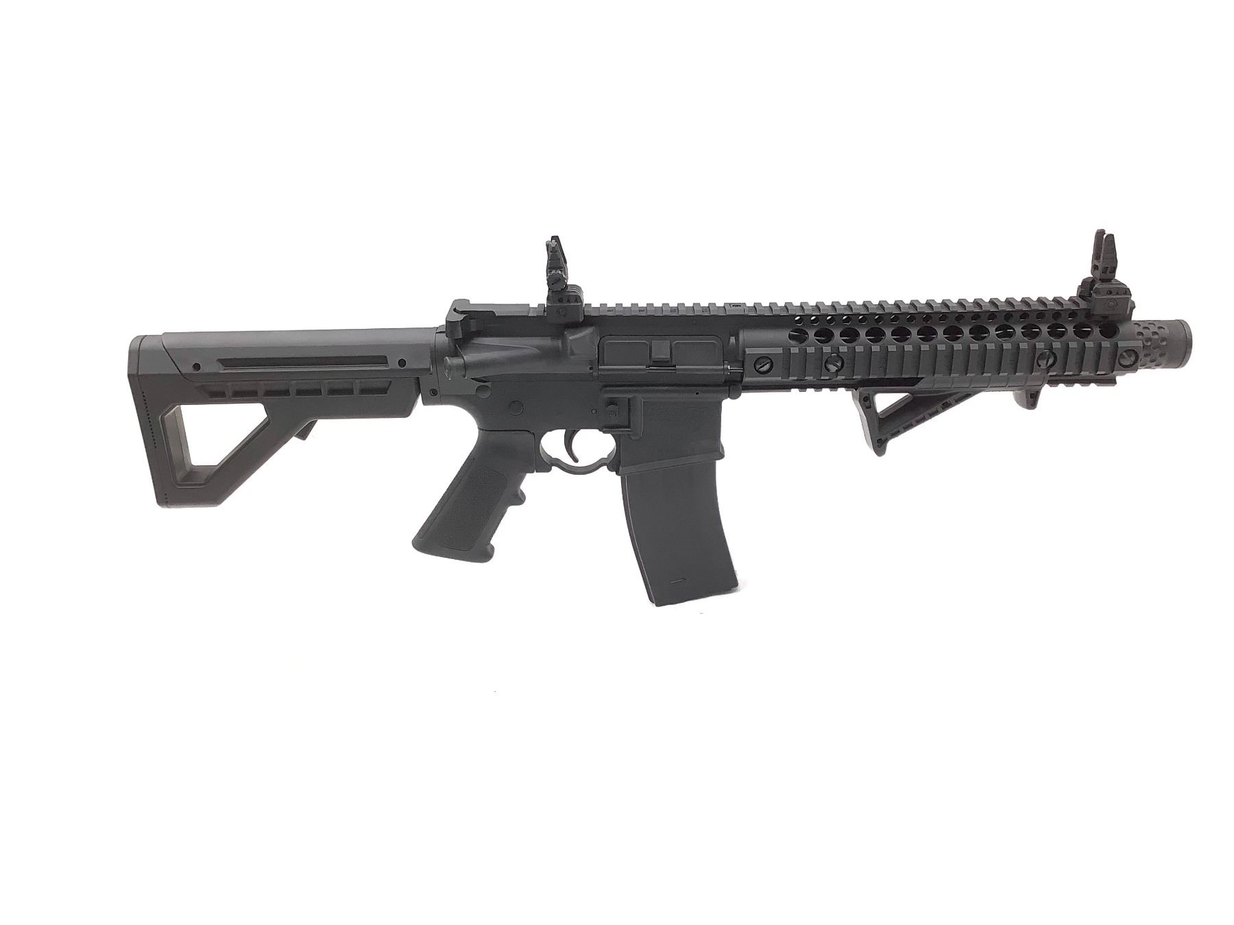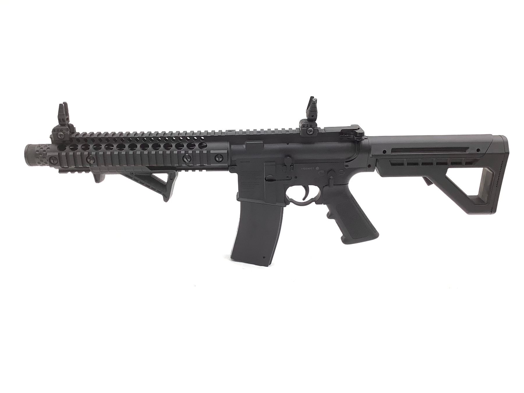 Crosman DPMS SBR Full Auto CO2 BB Rifle Black Adjustable Stock 430 FPS, New Display Model. Officially licensed and stamped, the DPMS SBR slings blistering semi and full-auto repeating BB shots, fueled by two 12-gram CO2 cartridges housed in the 25rd magazine. You must be over 18 years of age to purchase this item.