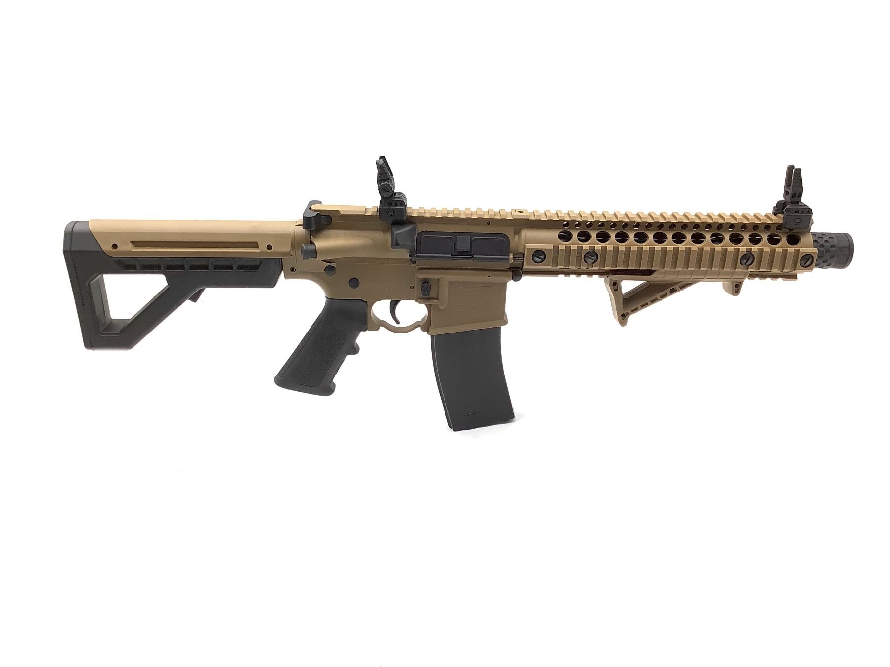 DPMS SBR Full Auto CO2 Powered BB Air Rifle 430 fps FDE, New Display Model. 25 round magazine, 6 position stock. You must be over 18 years of age to purchase this item.