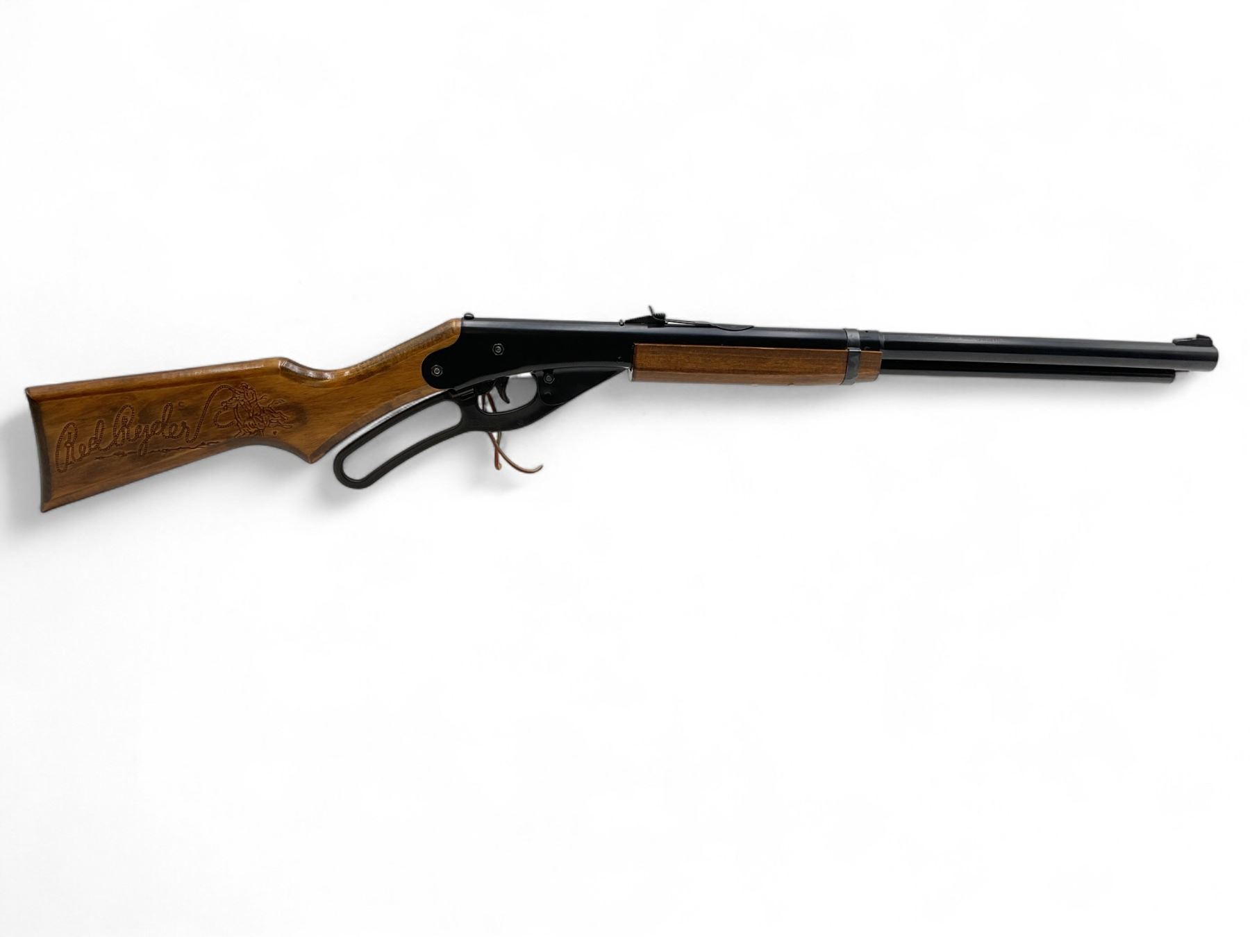 Daisy Model 1938B Red Ryder Air BB Rifle 350 FPS. Tubular magazine; wood stock. You must be over 18 years of age to purchase this item.