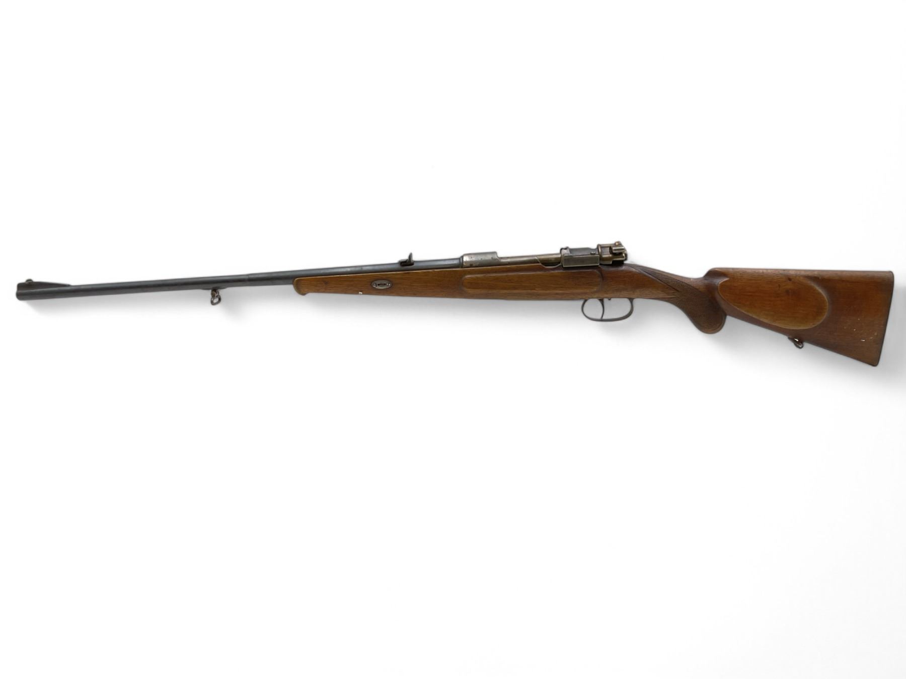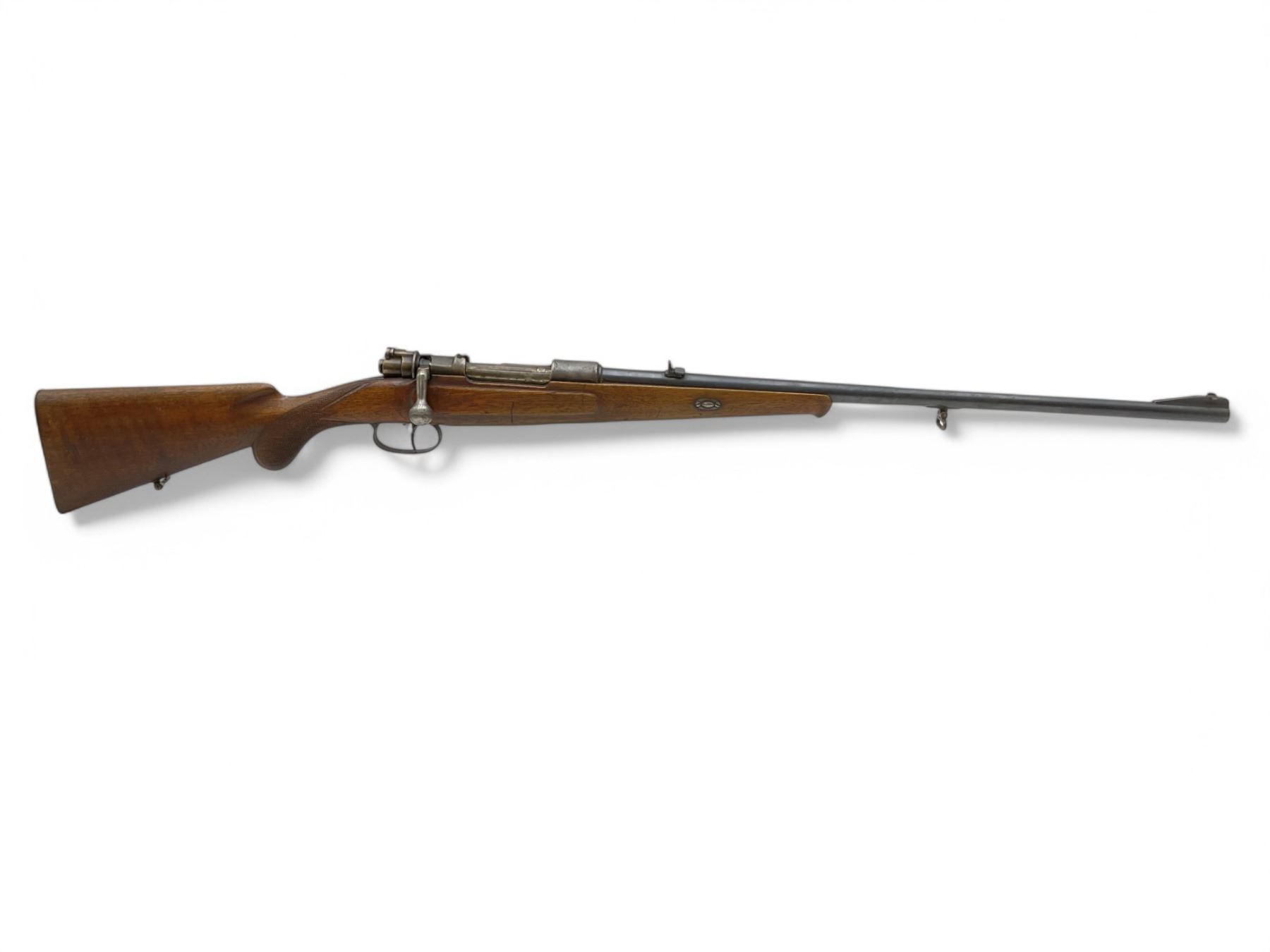 Danzig M98 Bolt Action Rifle 8X57J 24" Barrel Wood Stock. Internal magazine with base plate. Factory open sights; single trigger. This is a non-restricted firearm.
