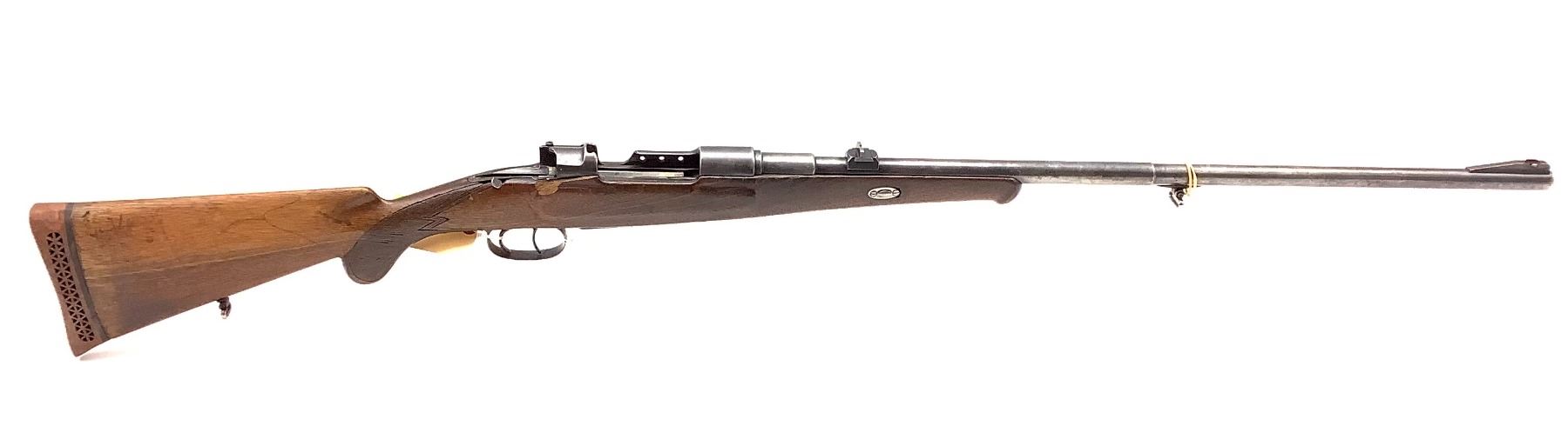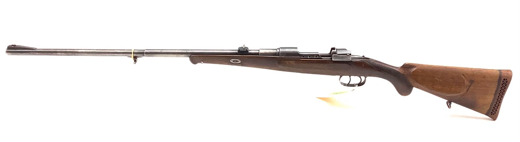 Danzig Mauser Sporter Bolt Action Rifle 8X57 27" Barrel Wood Stock. No bolt assembly, double trigger. Fixed sights, internal magazine. Receiver drilled and tapped for a mount, has custom butt pad. This is a non-restricted firearm.