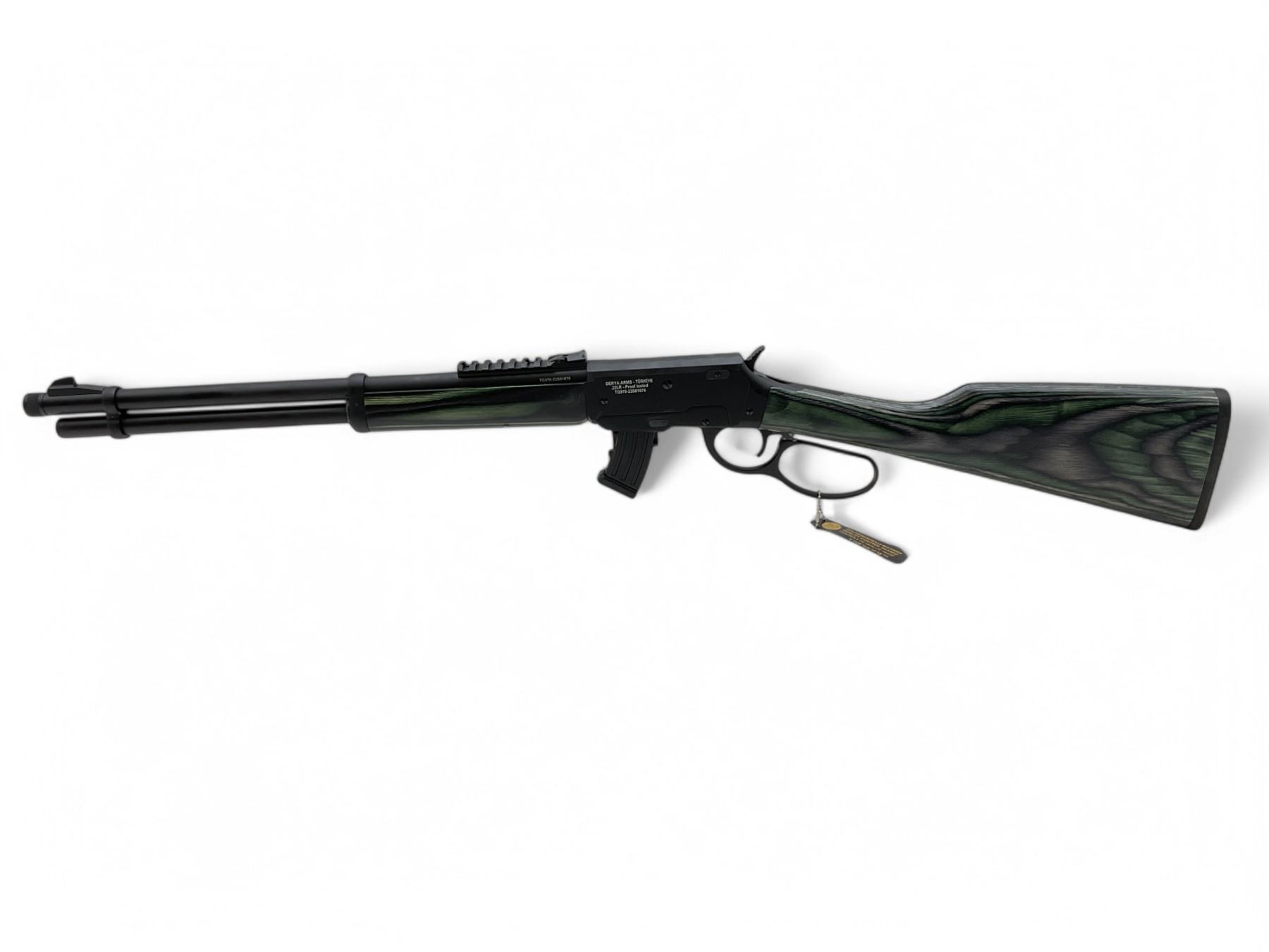 Derya TM22 Lever Action Rifle 22LR 18" Threaded Barrel Green Laminate Wood Stock, New. Detachable magazine, factory open sights. Includes one piece rail. This is a non-restricted firearm.