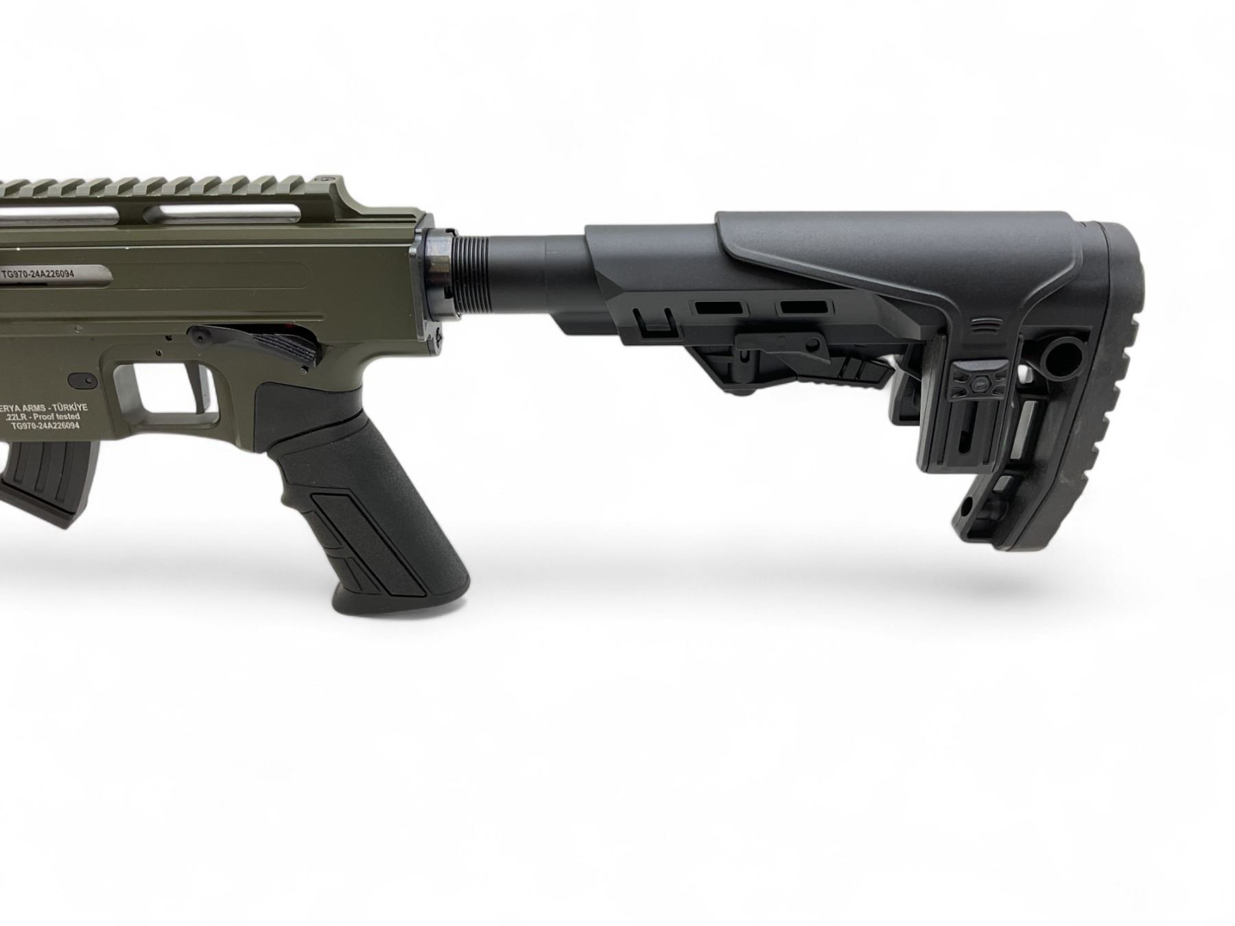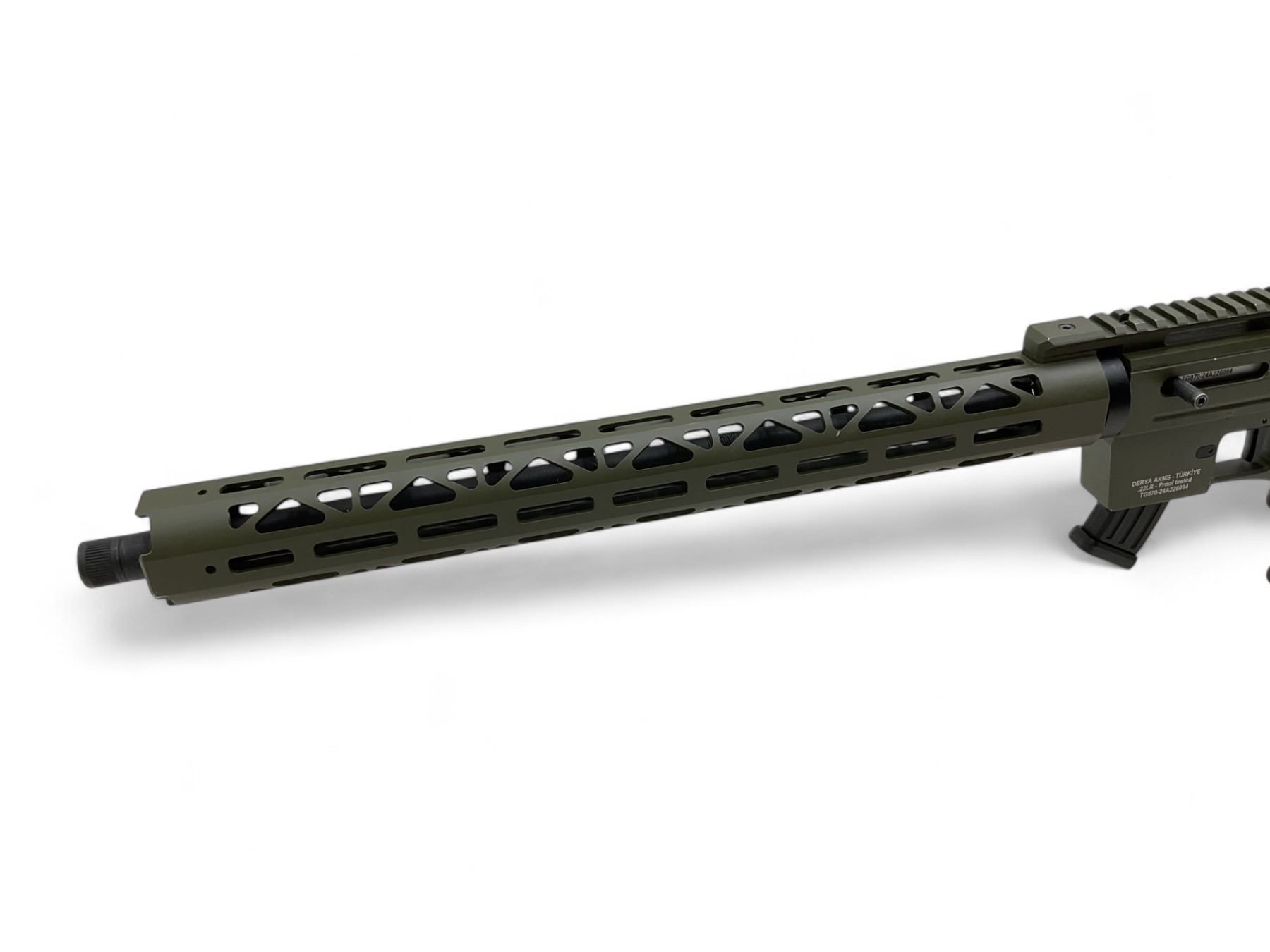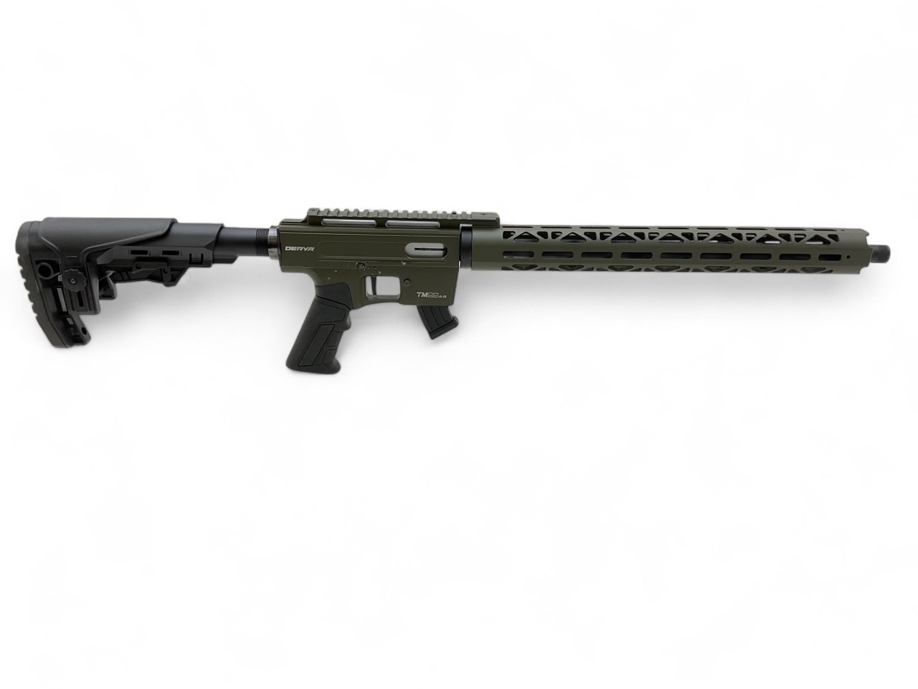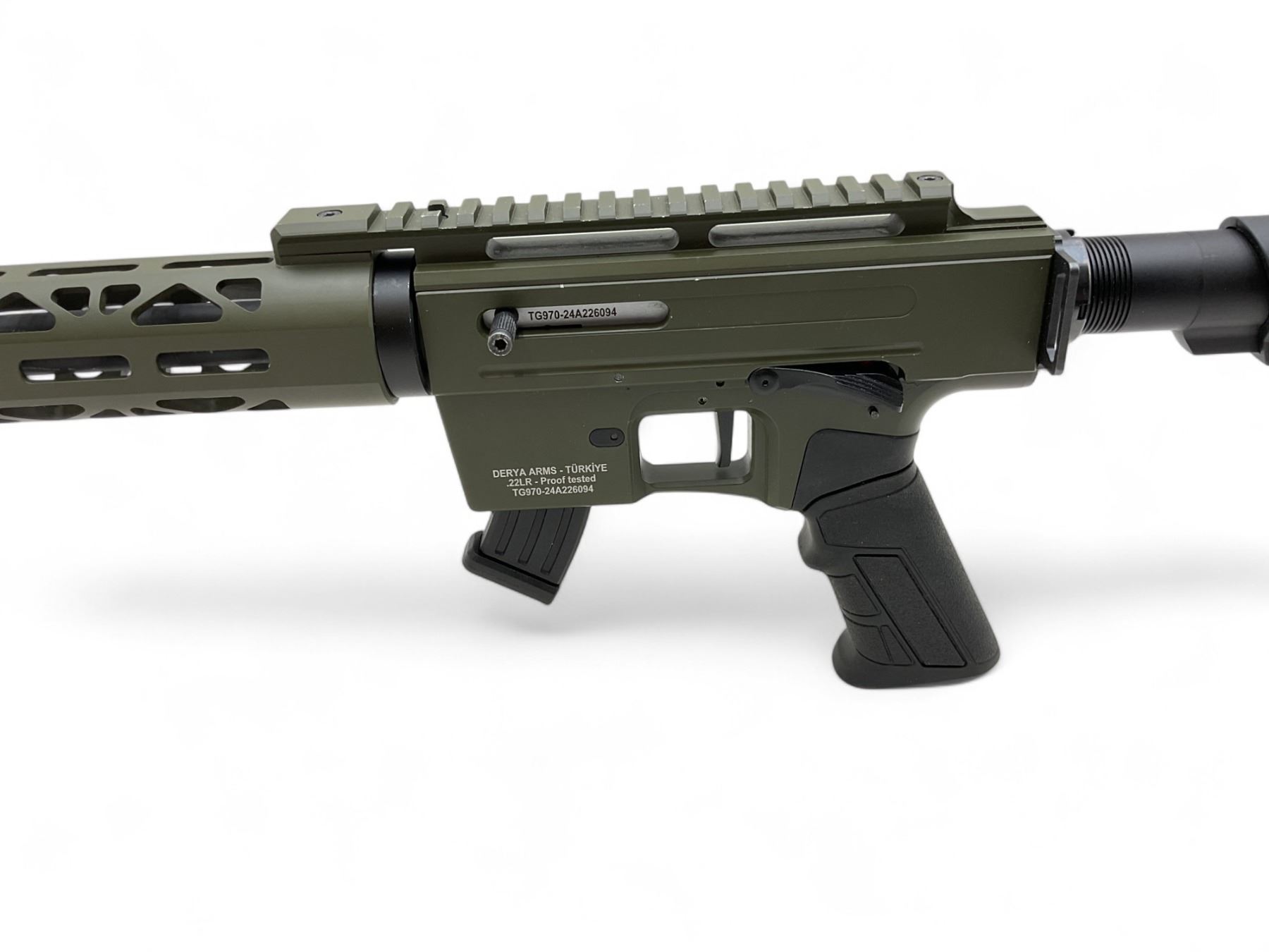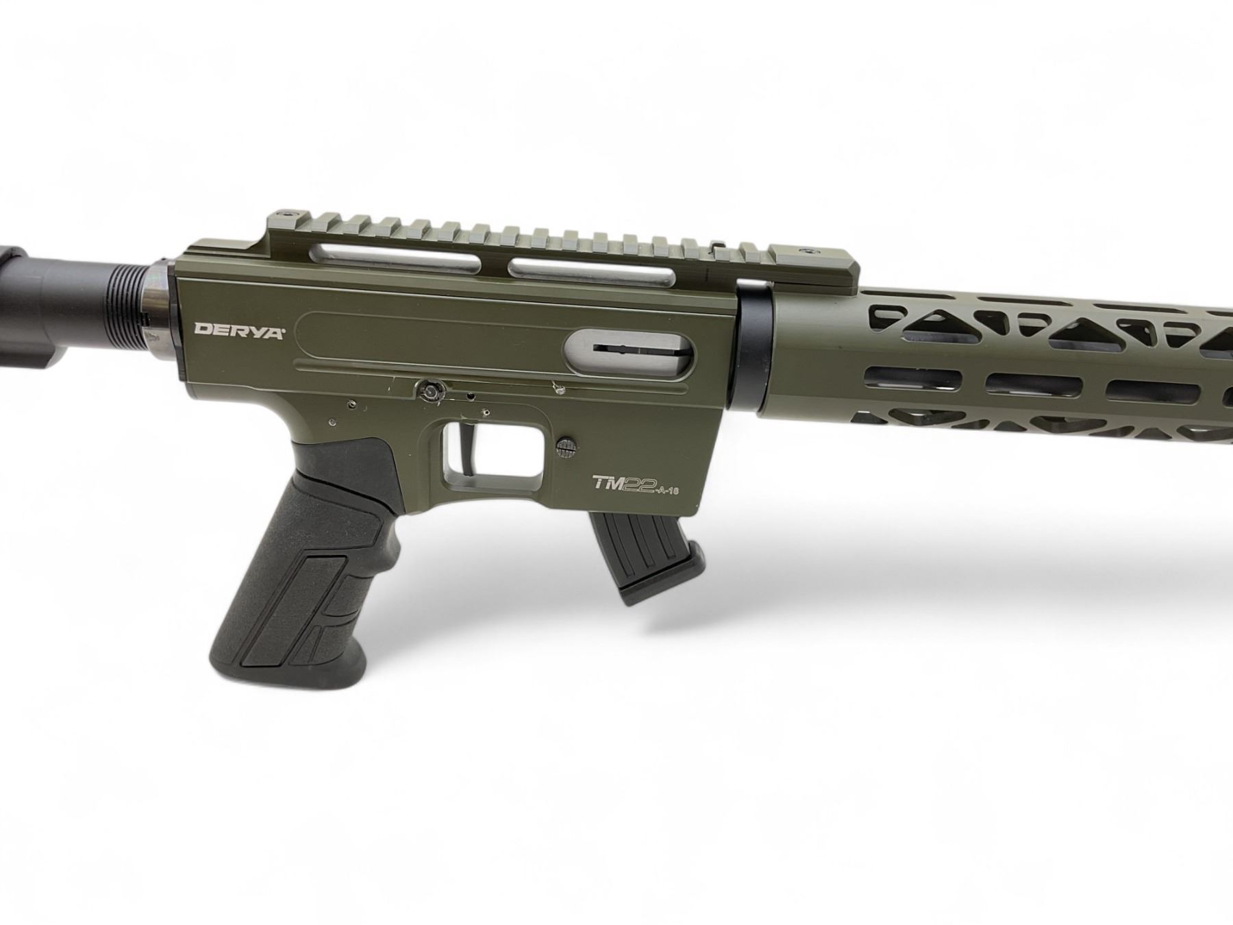 Derya TM22 Semi Auto Rifle 22LR 18" Threaded Barrel ODG Green. Detachable magazine, adjustable stock. This is a non-restricted firearm.
