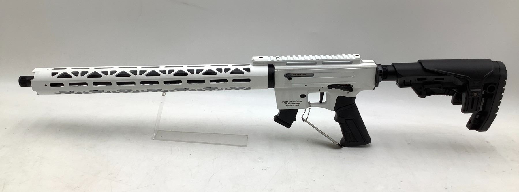 Derya TM22 Semi Auto Rifle 22LR 18" Threaded Barrel White, New. Detachable magazine, adjustable stock. This is a non-restricted firearm.