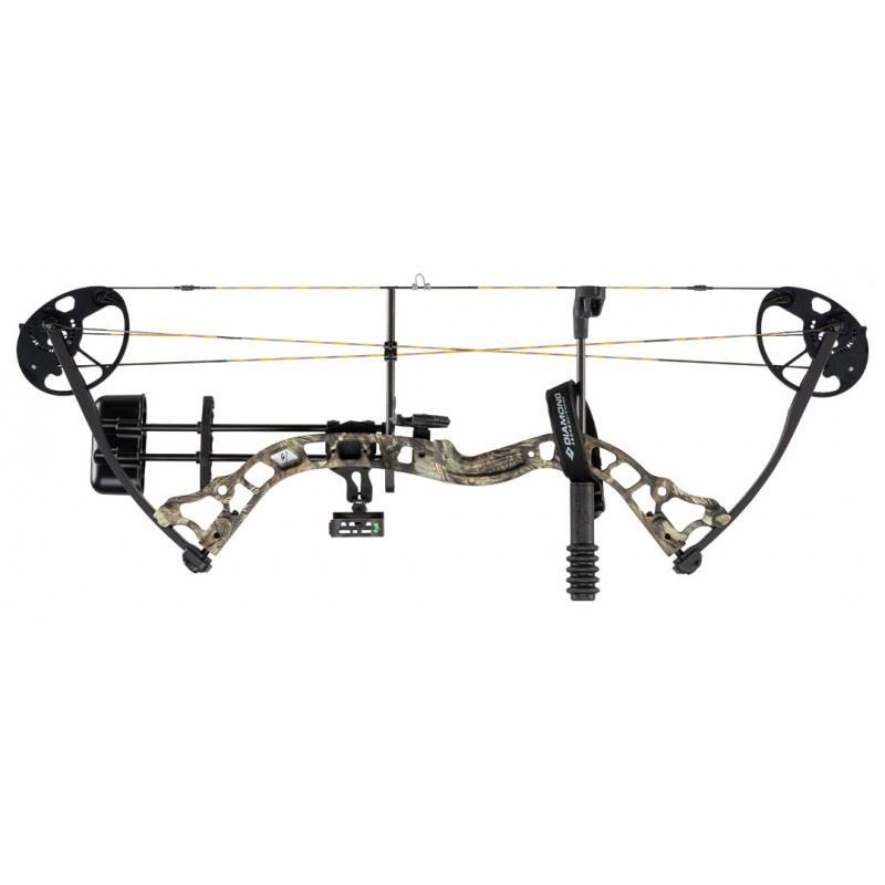 Diamond Infinite 305 LH Compound Bow Package Mossy Oak Break-Up Country, New. Includes Octane Furnace 4-Arrow Quiver, Octane Stryker 3 pin Sight, Octane Boost 5 Inch Stabilizer, Octane Octagon Rest, Diamond Wrist Strap and 3 Strand Strap.