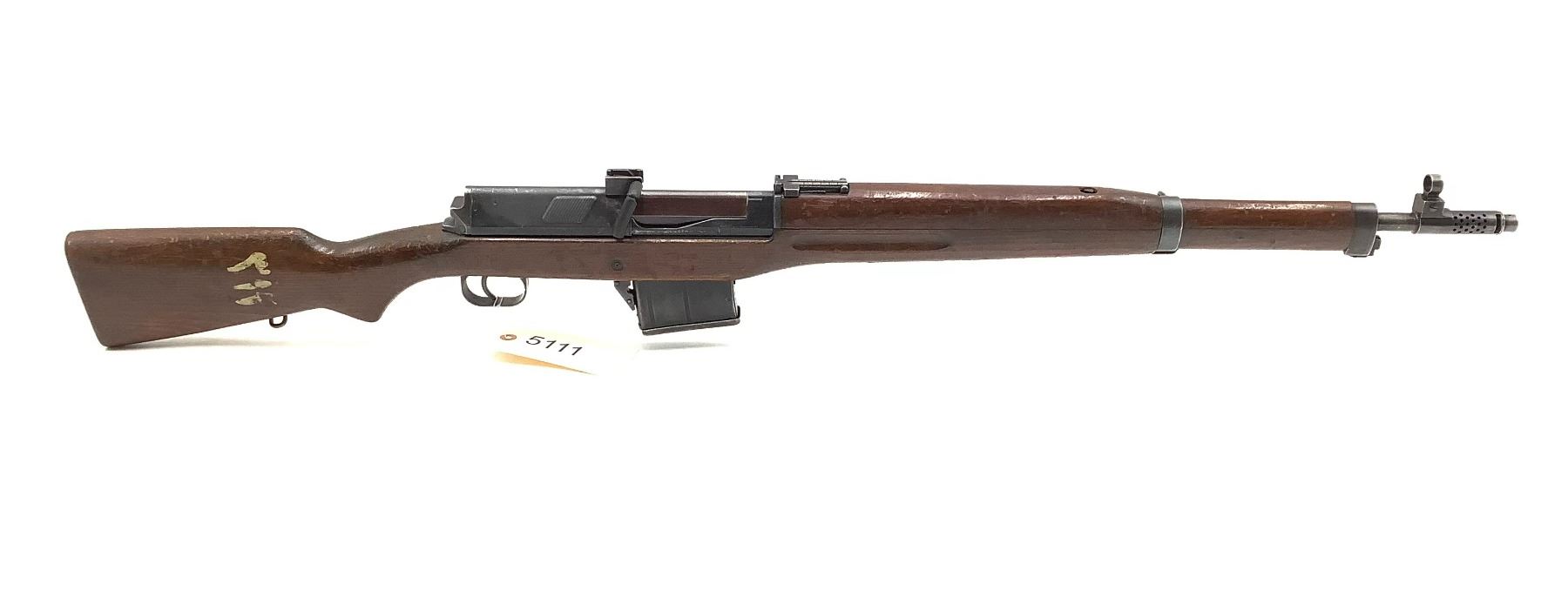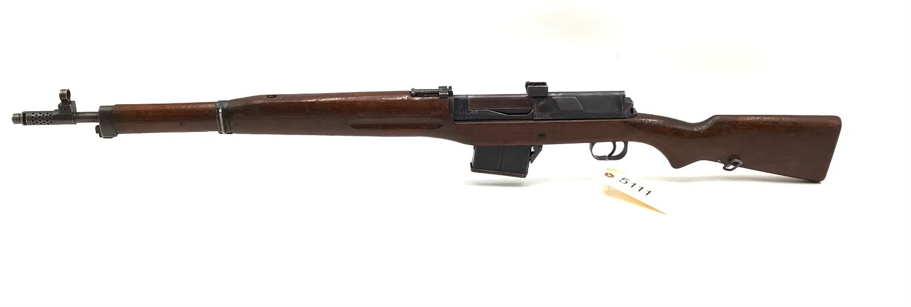 An Egyptian Hakim semi-automatic service rifle, 25" barrel with good bore chambered in 8mm Mauser (8X57). Wooden stock. Factory open sights, detachable magazine. The Hakim was an Egyptian-produced Swedish Ljungman AG-42 chambered in 8mm instead of the original 6.5X55.