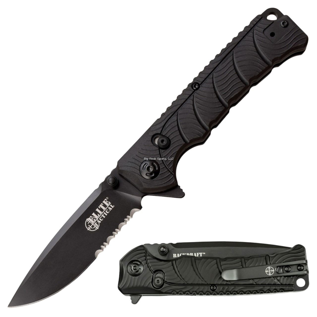 Elite Tactical Backdraft 3.5" Manual Folding Knife, 1/2 Serrated Steel Blade, New
