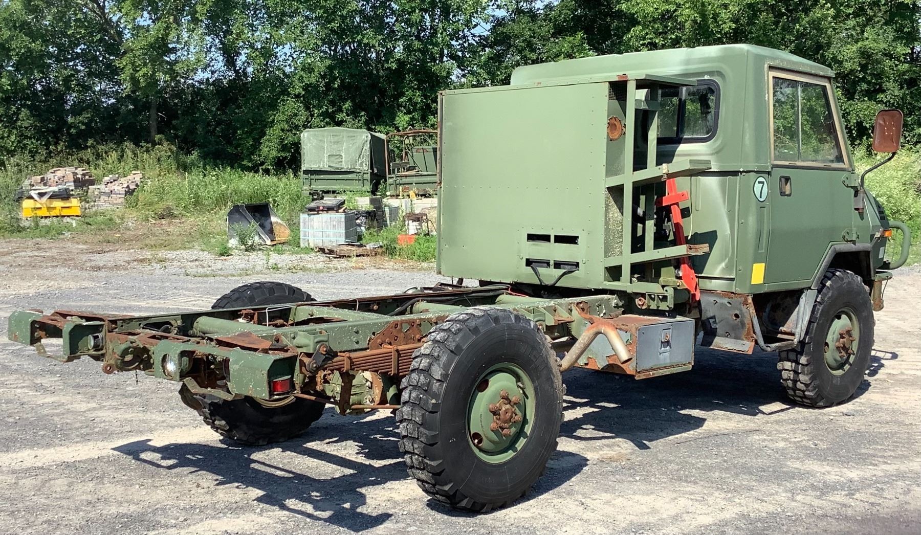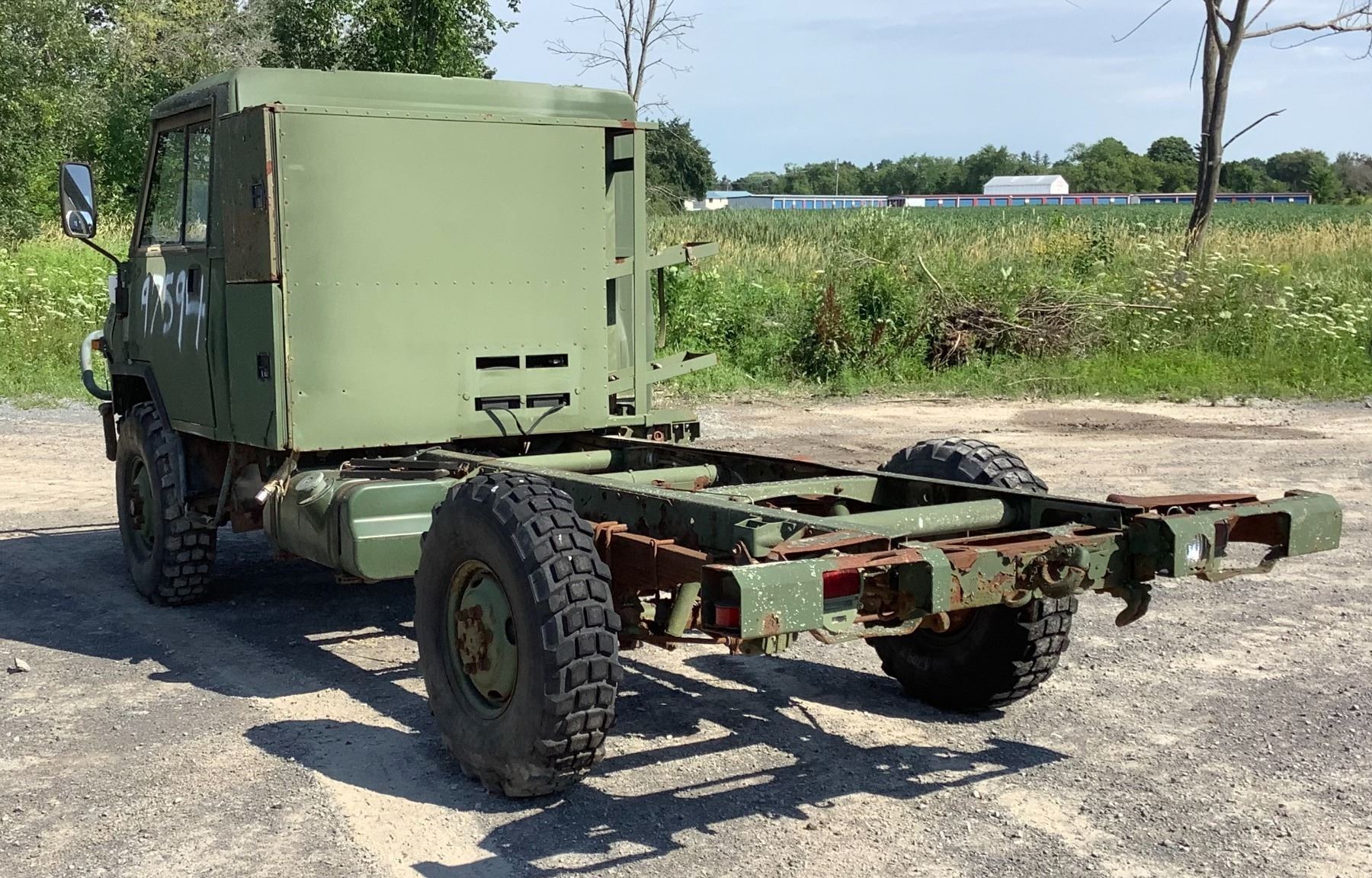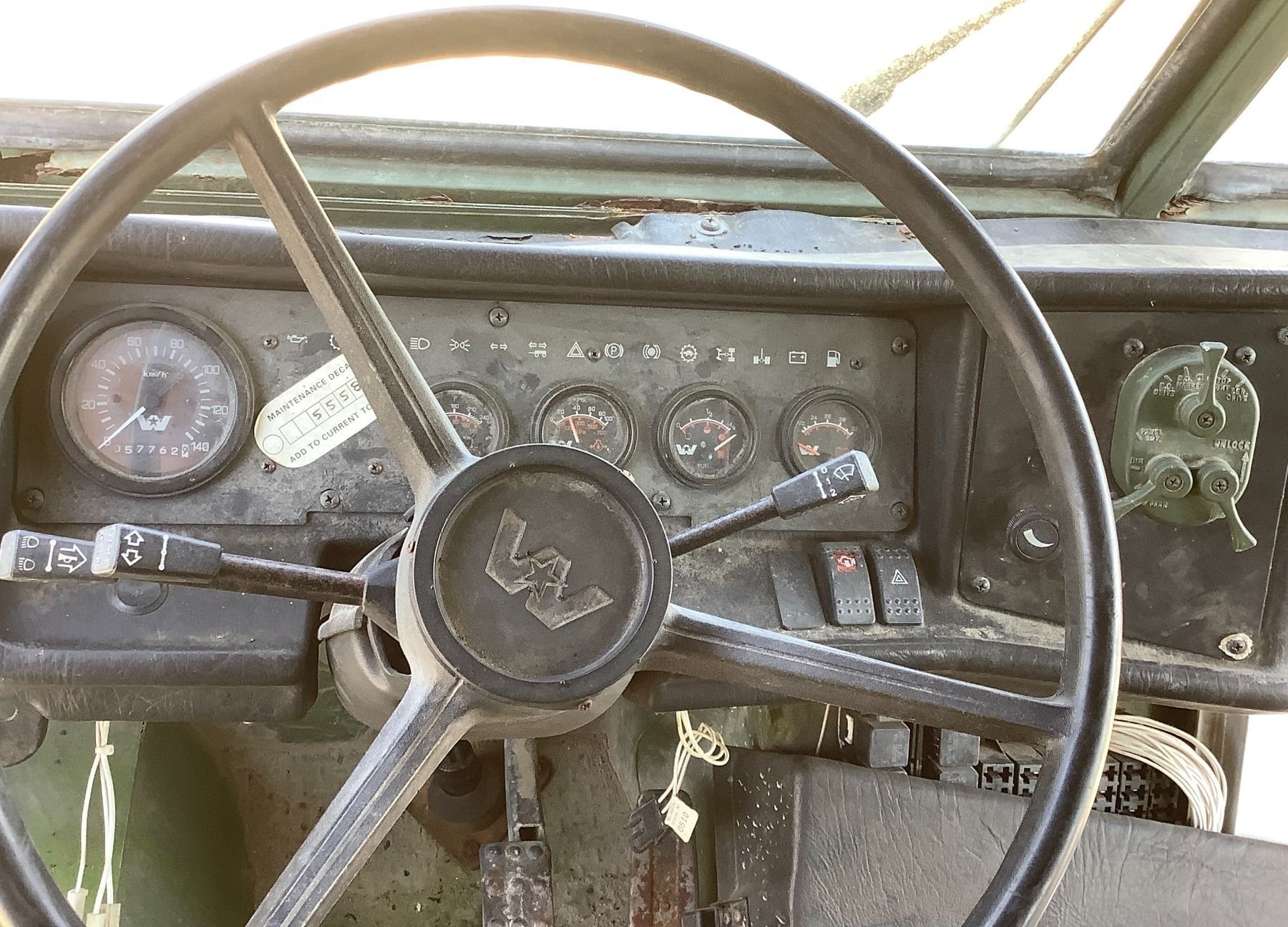 This is an ex Canadian Forces LSVW. The batteries are removed and we have not attempted to start it. One of the rear wheels seems to be locked up, we figure a brake is stuck on. One of the rear tires seems to have a leak as well. We pumped it up for the pictures but it slowly went down. It does not come with an ownership.