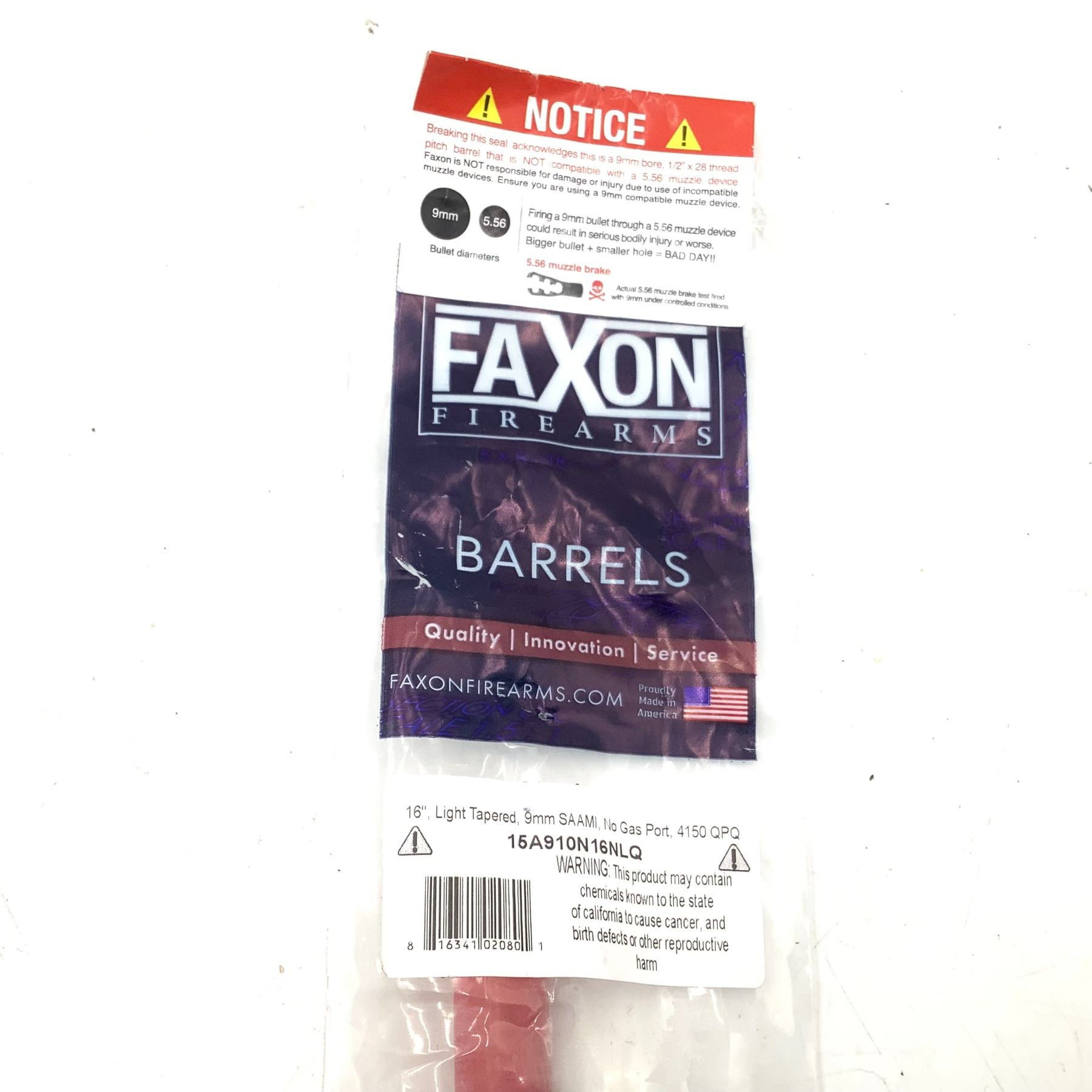 Faxon 15A910N16NLQ 16" Light Tapered Barrel 9MM SAAMI No Gas Port, New.