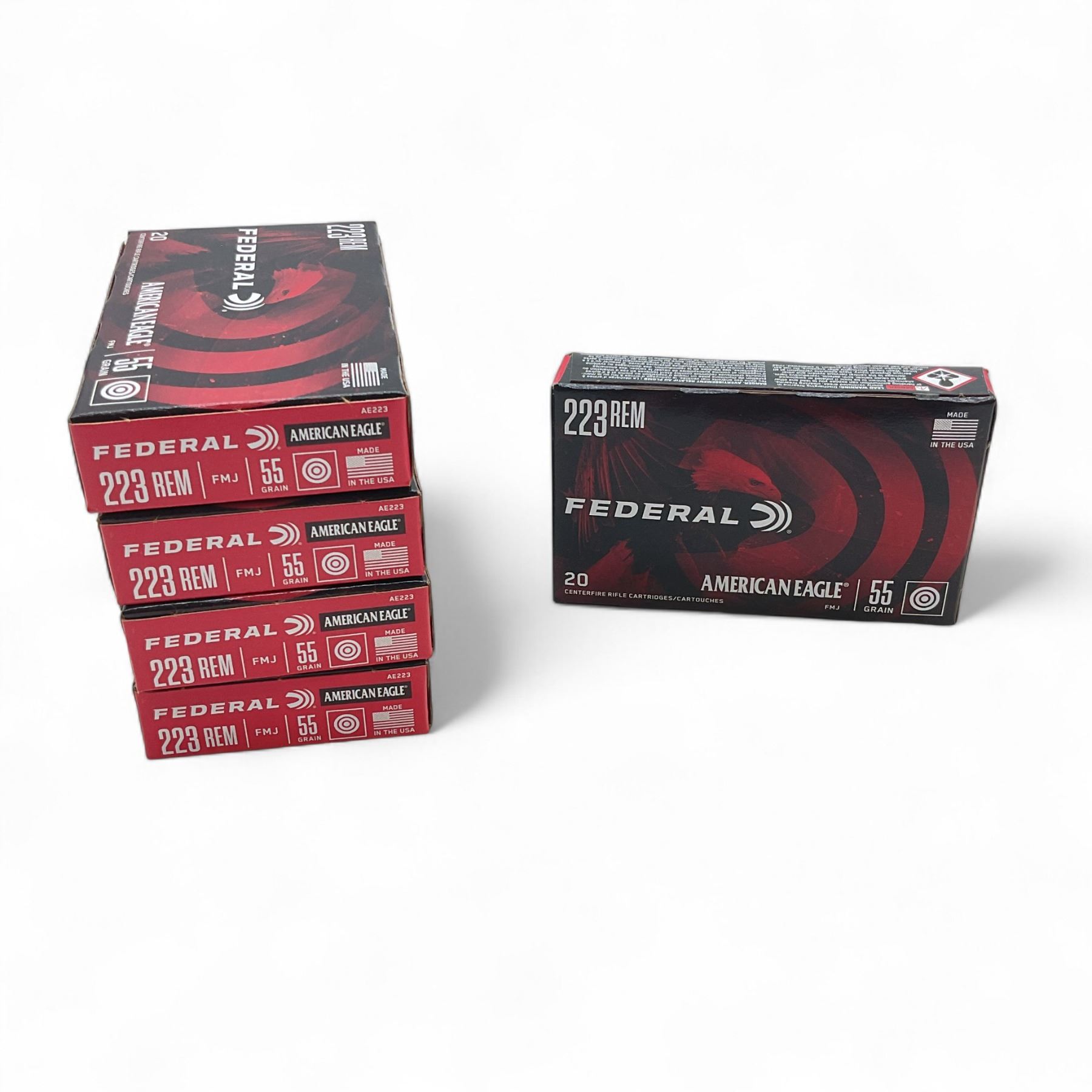 Federal American Eagle 223 Rem 55 Grain FMJ Ammunition, 100 Rounds