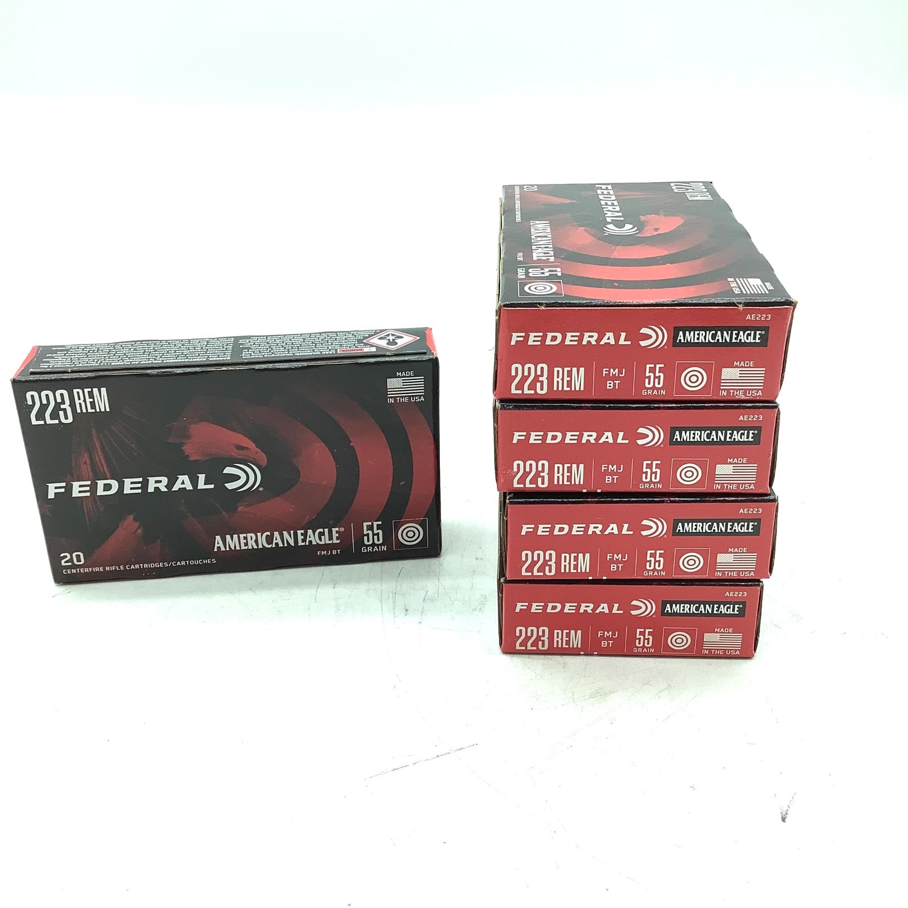 Federal American Eagle 223 Rem 55 Grain FMJ BT Ammunition, 100 Rounds