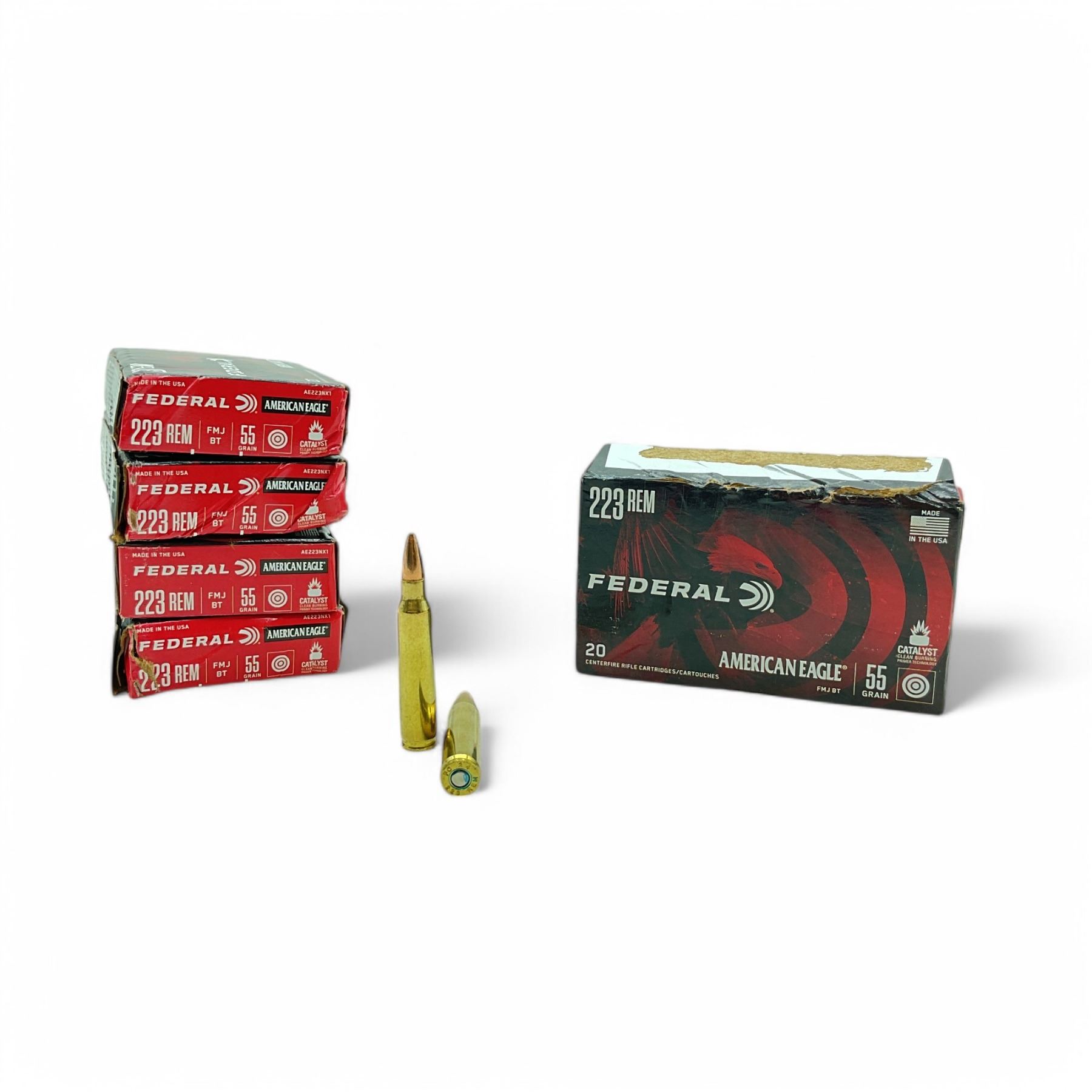 Federal American Eagle .223 Rem, 55 Grain FMJBT Ammunition, 100 Rounds