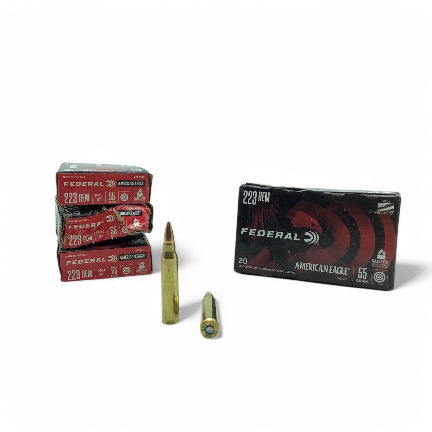 Federal American Eagle .223 Rem, 55 Grain FMJBT Ammunition, 80 Rounds