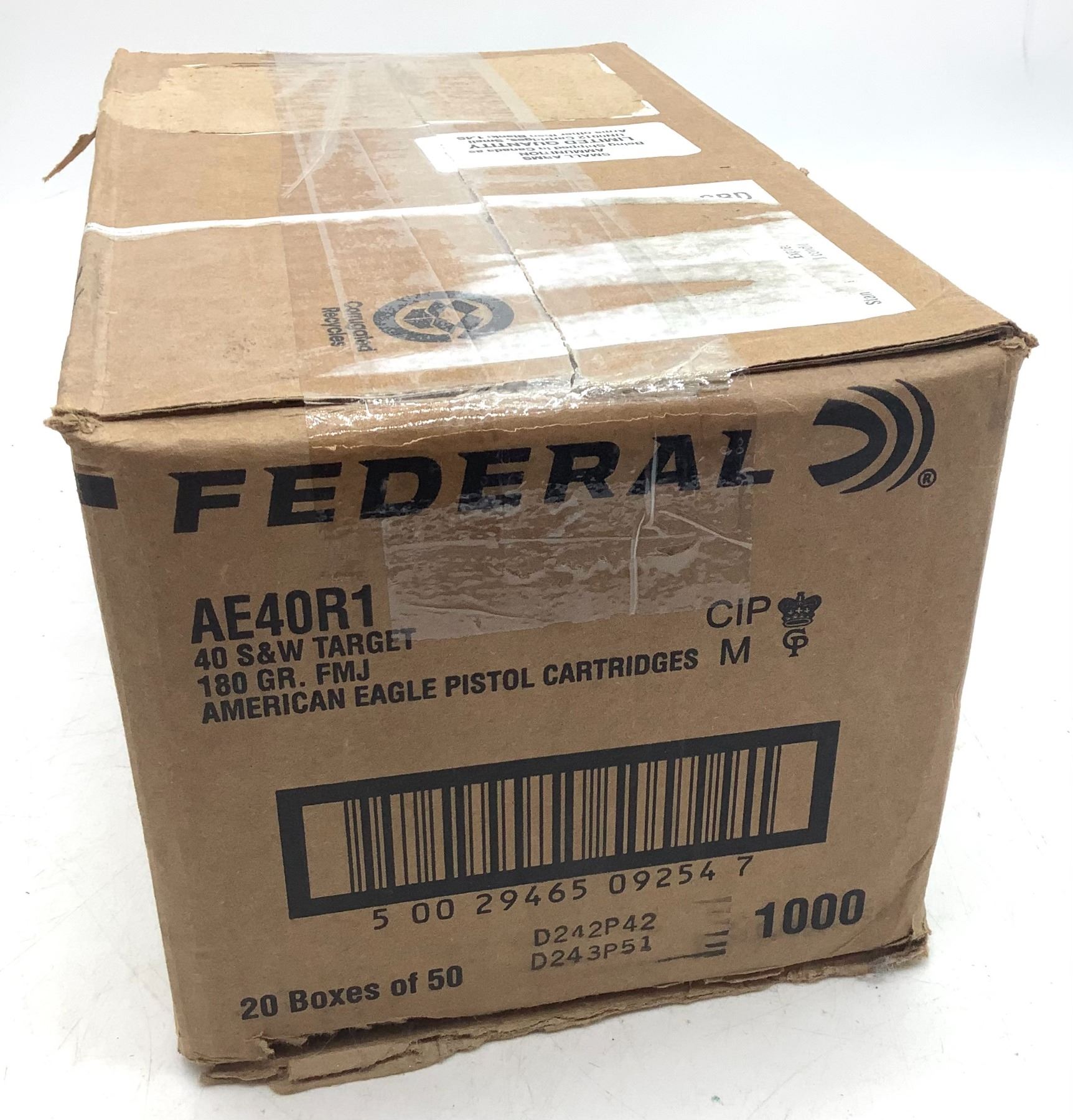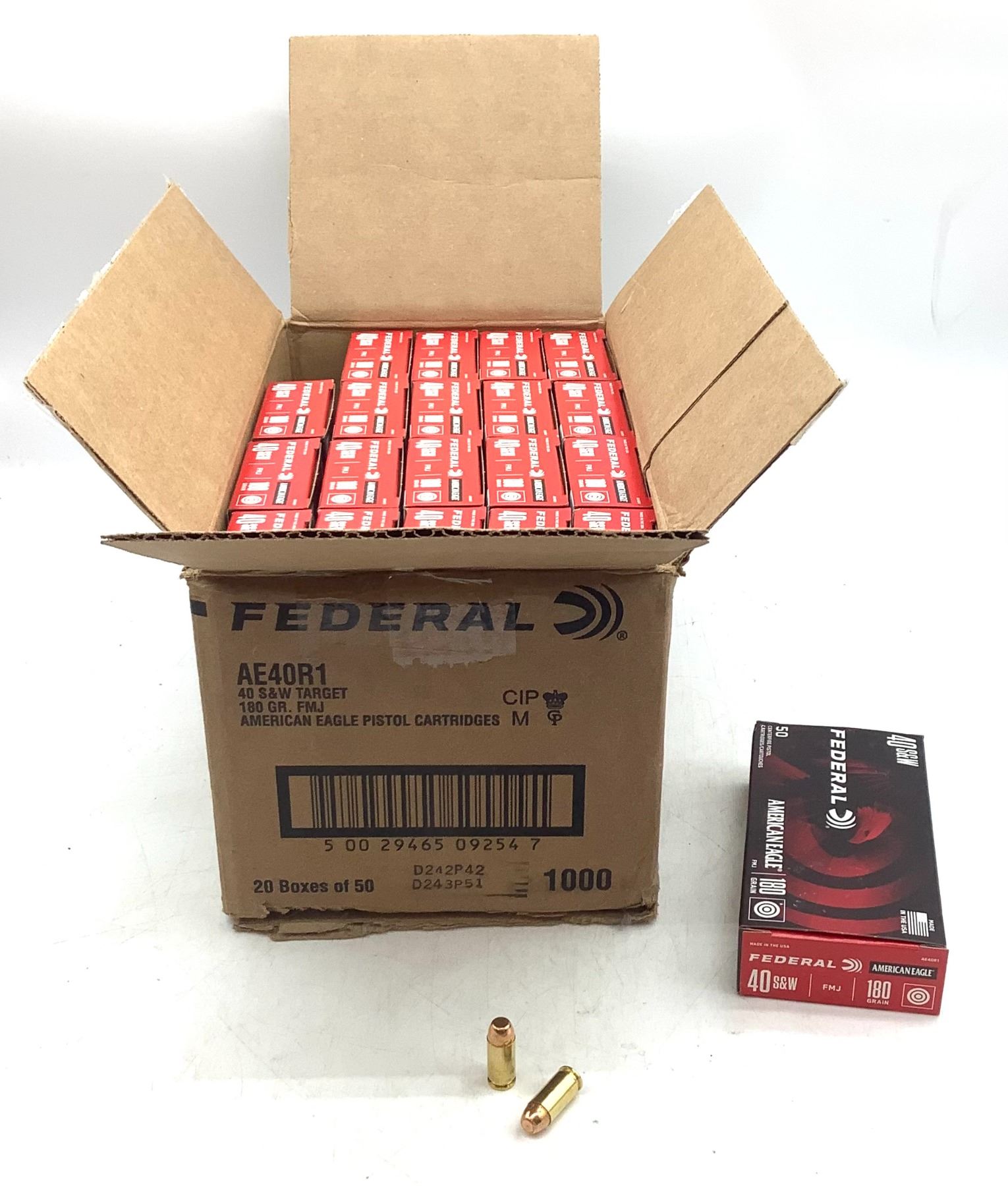 Federal American Eagle .40 S&W 180 Gr FMJ Ammunition Case Lot, 1000 Rounds (20 boxes of 50 rounds)