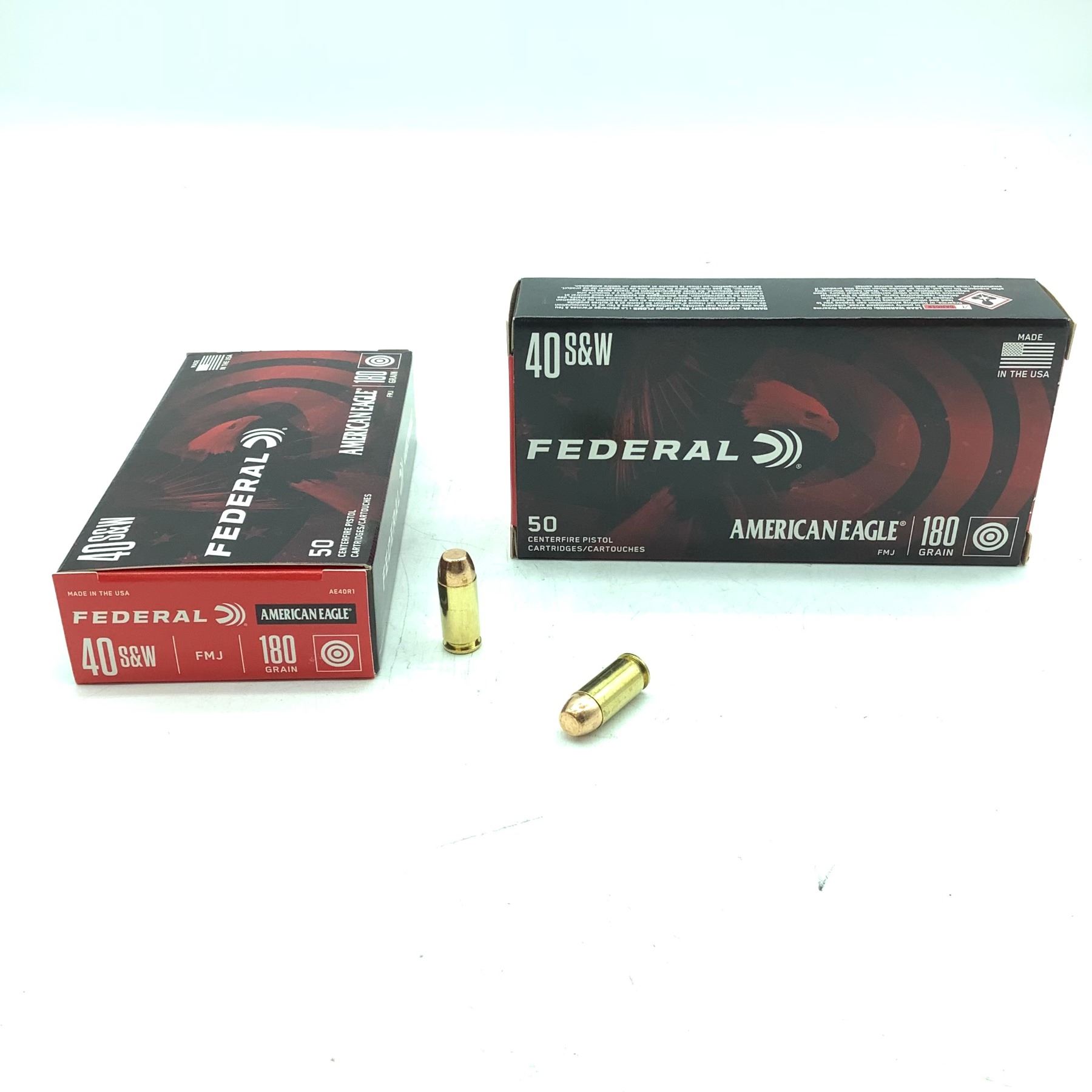 Federal American Eagle 40 S & W 180 Grain FMJ Ammunition, 100 Rounds