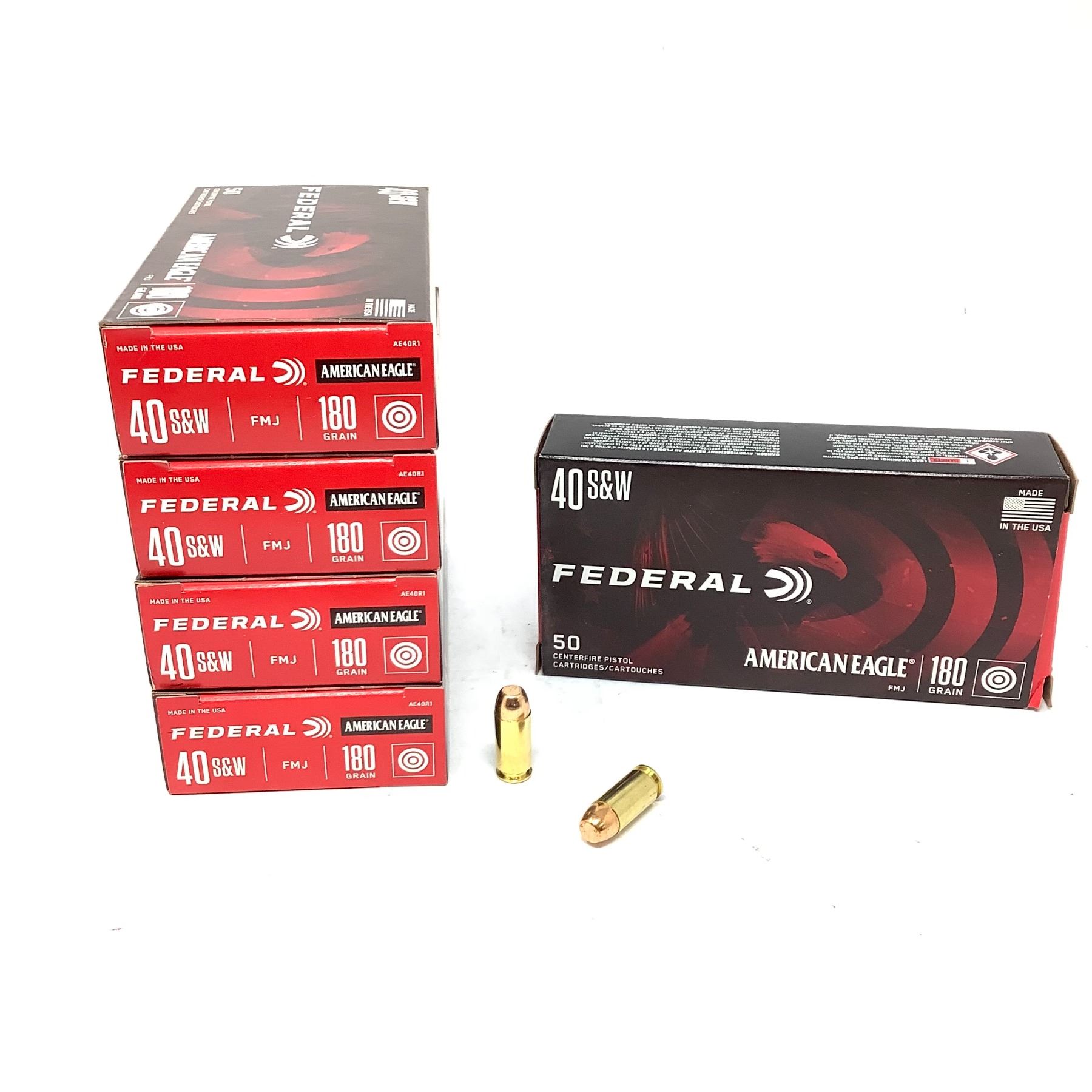 Federal American Eagle 40 S & W 180 Grain FMJ Ammunition, 250 Rounds