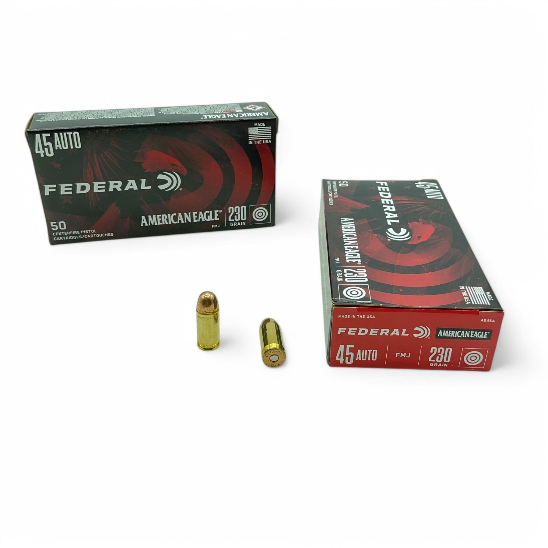 Federal American Eagle 45 ACP 230 Grain FMJ Ammunition, 100 Rounds