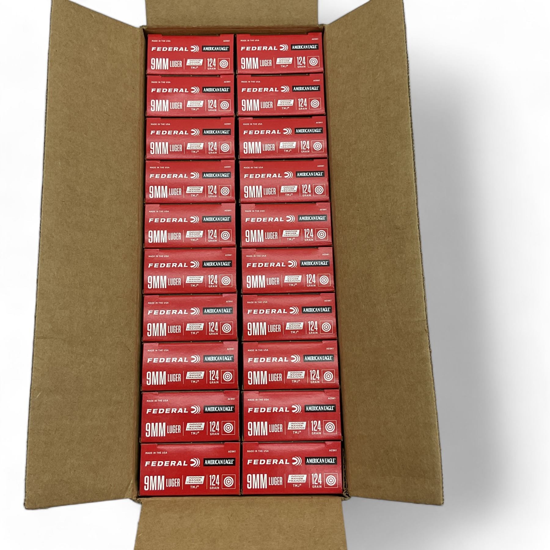 Federal American Eagle 9 mm 124 Grain TMJ Ammunition, 1000 Round Case