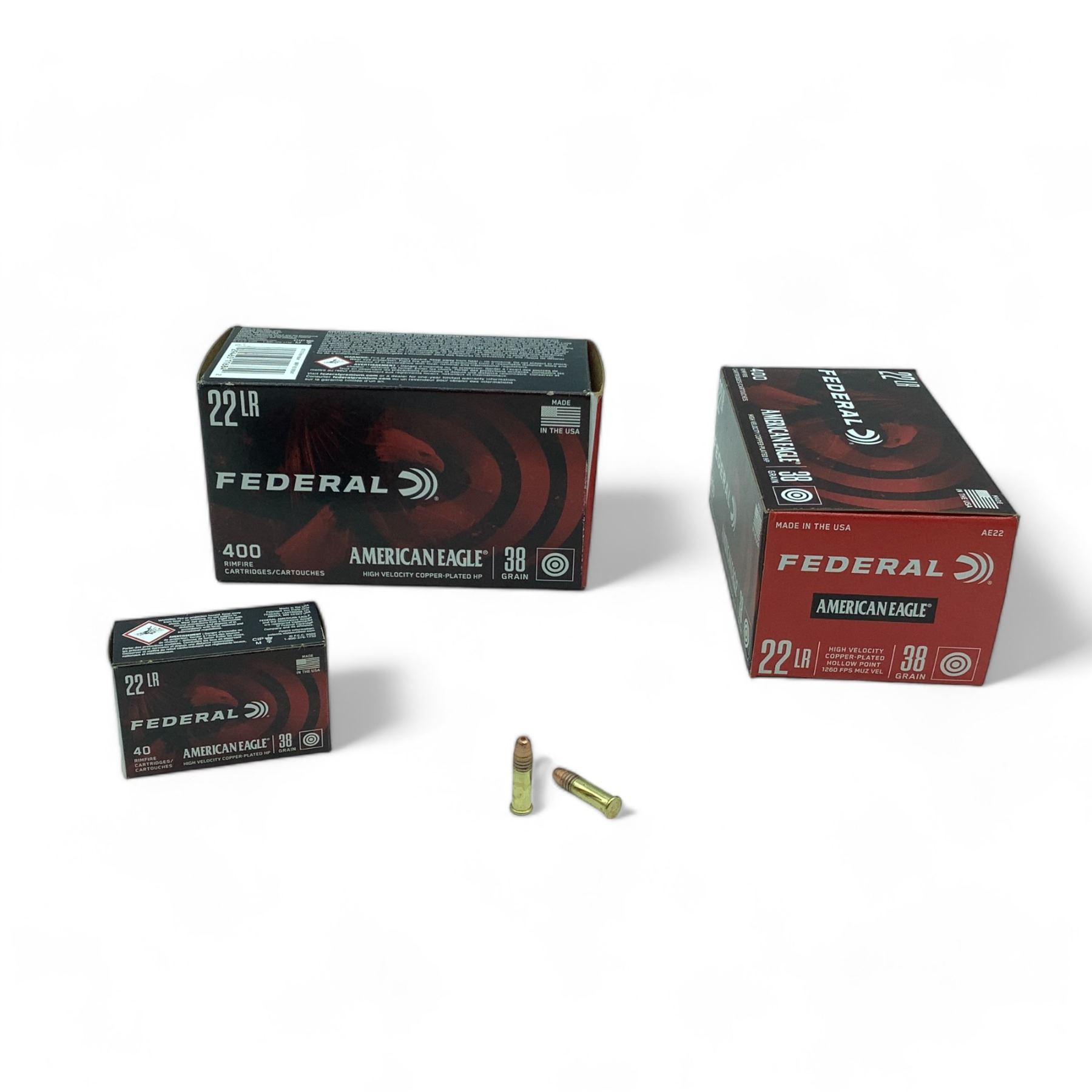 Federal American Eagle HV 22 LR 38 Grain Copper Plated Hollow Point Ammunition, 800 Rounds