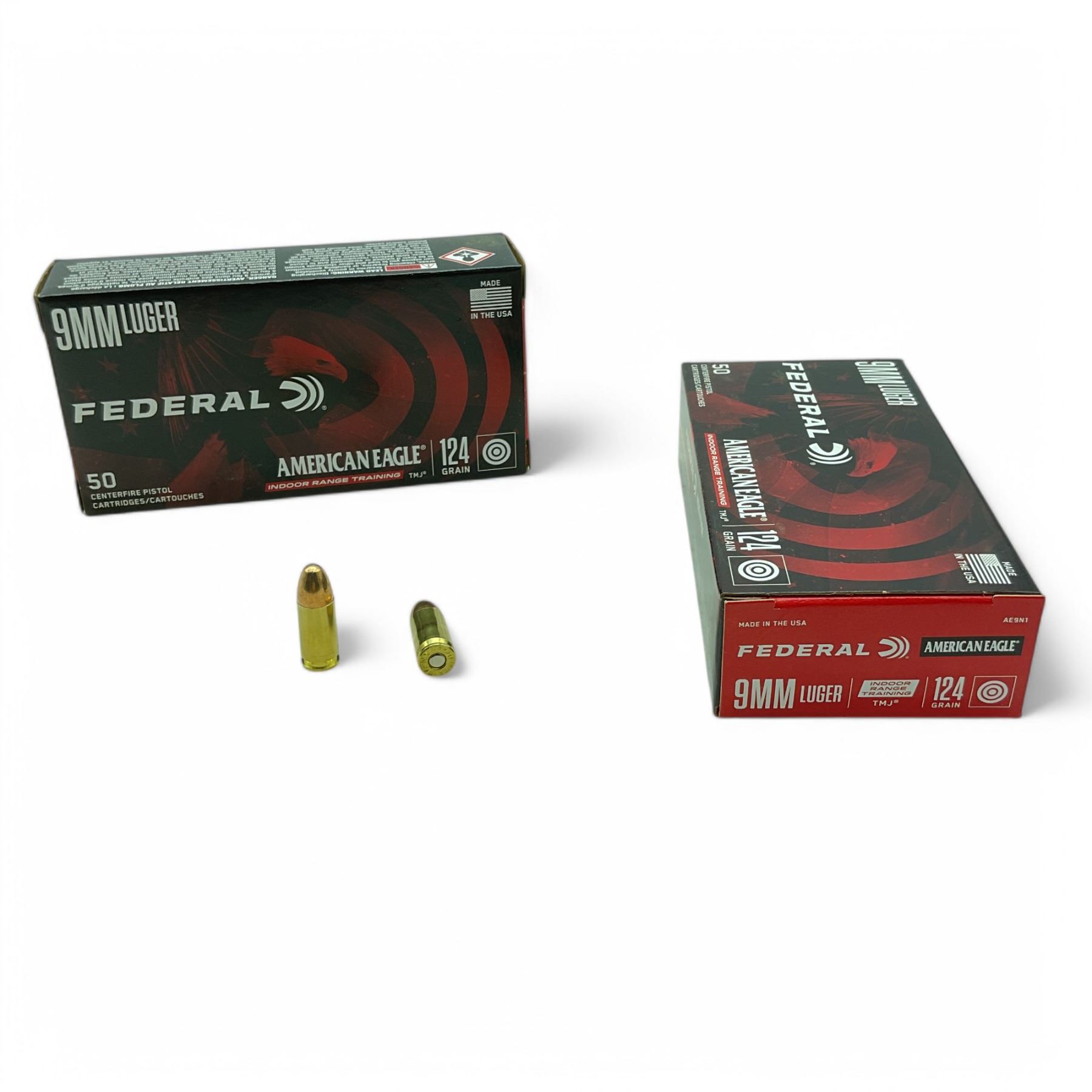 Federal American Eagle Indoor Range Training 9 mm 124 Grain TMJ Ammunition, 100 Rounds