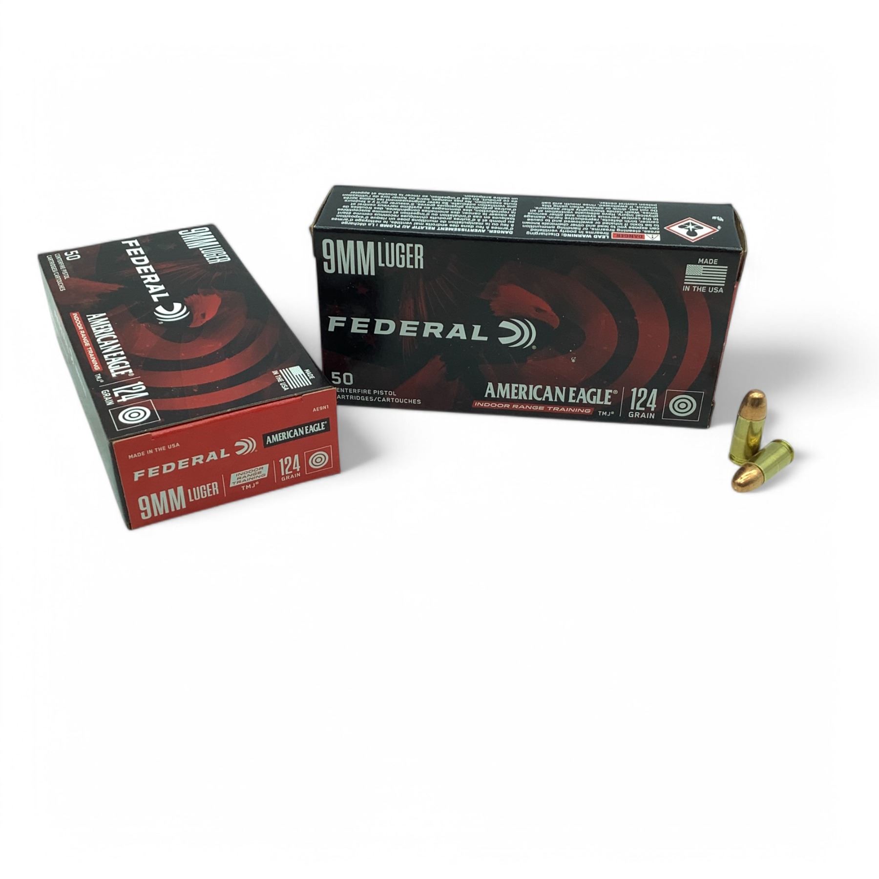 Federal American Eagle Indoor Range Training 9 mm 124 Grain TMJ Ammunition, 100 Rounds