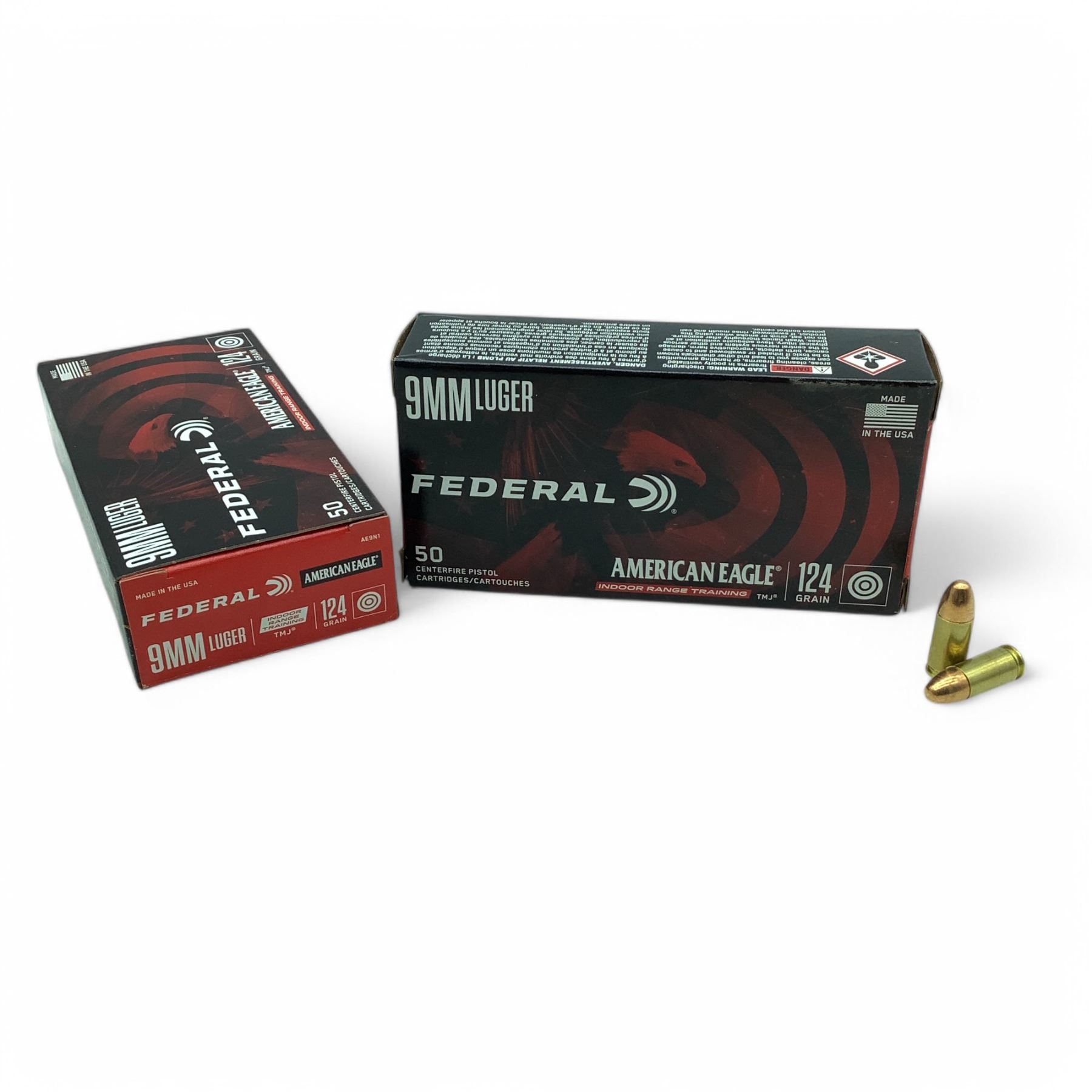 Federal American Eagle Indoor Range Training 9 mm 124 Grain TMJ Ammunition, 100 Rounds