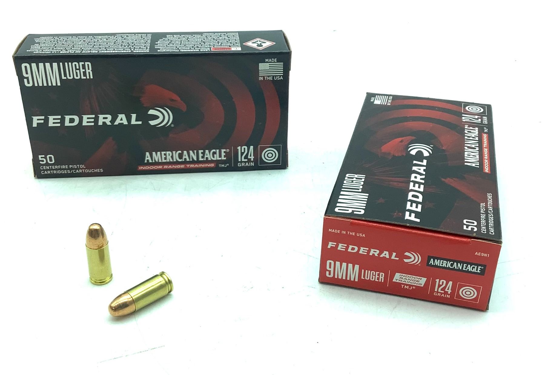 Federal American Eagle Indoor Training 9 mm 124 Grain TMJ Ammunition, 100 Rounds