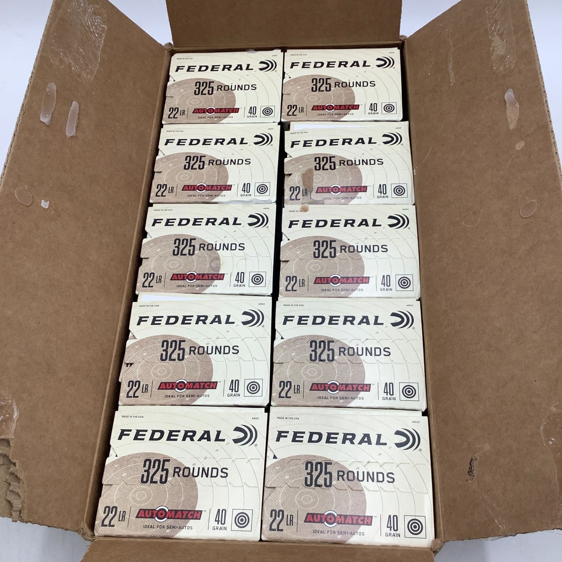 Federal Auto Match AM22 22 LR 40 Grain LRN Ammunition, 3250 Round Case.